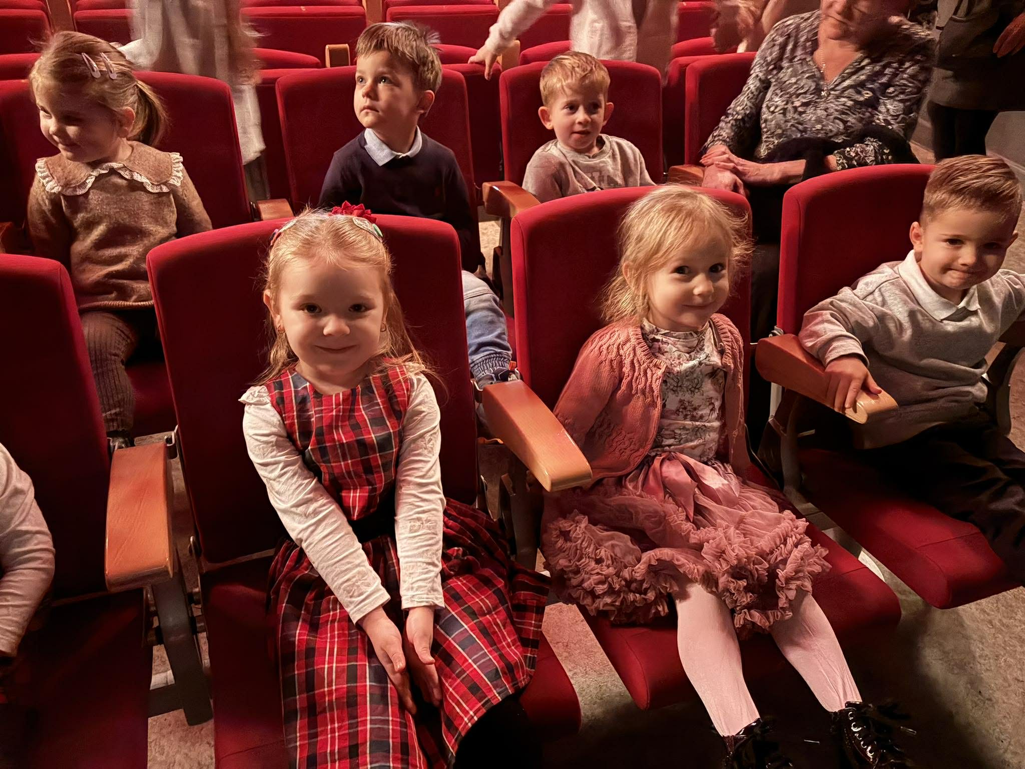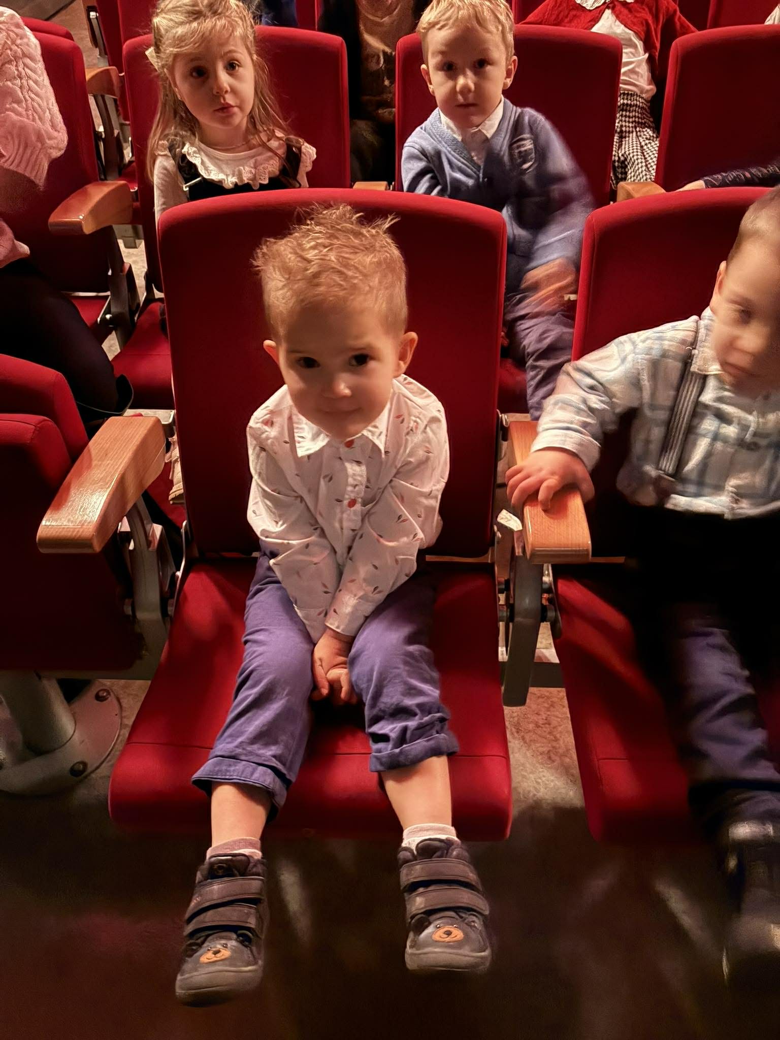Wizyta w teatrze była dla dzieci niezwykłym przeżyciem. Już od wejścia maluchy z zaciekawieniem rozglądały się po sali, a ciepłe światła i kolorowa scenografia wprowadziły je w bajkowy nastrój. Spektakl „Brzydkie Kaczątko” okazał się pełen muzyki, ruchu i barwnych postaci, dzięki czemu najmłodsi z łatwością śledzili historię. Dzieci reagowały żywo – śmiały się, klaskały i przeżywały losy bohatera. Po przedstawieniu długo opowiadały o swoich ulubionych scenach. To była wspaniała okazja do pierwszego kontaktu z teatrem i rozwijania wyobraźni.