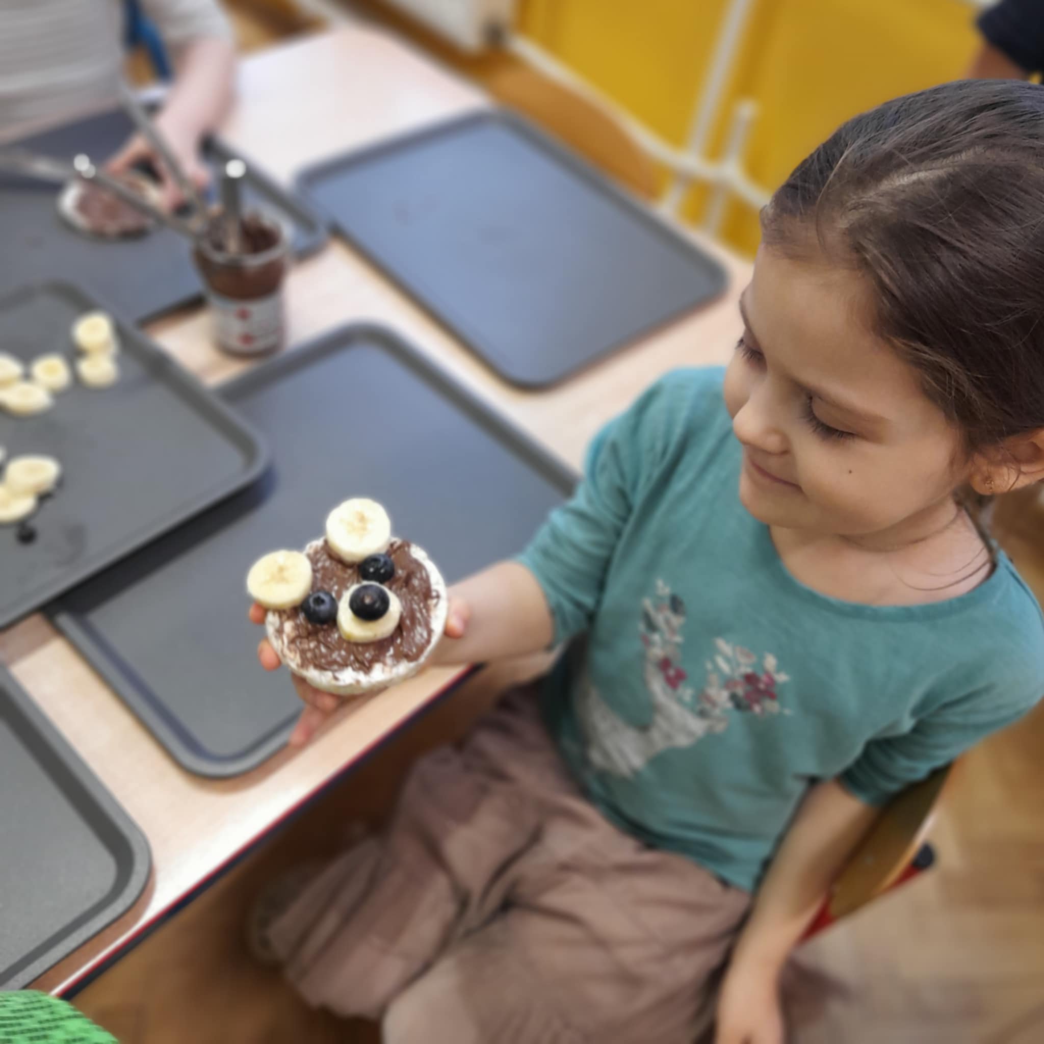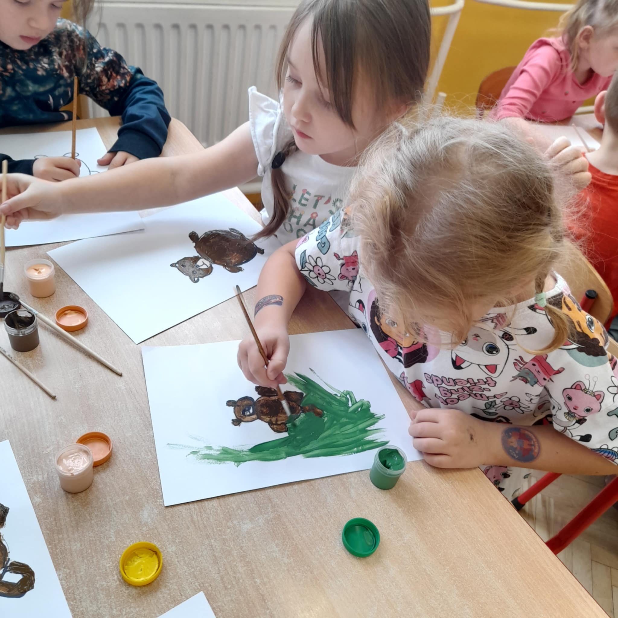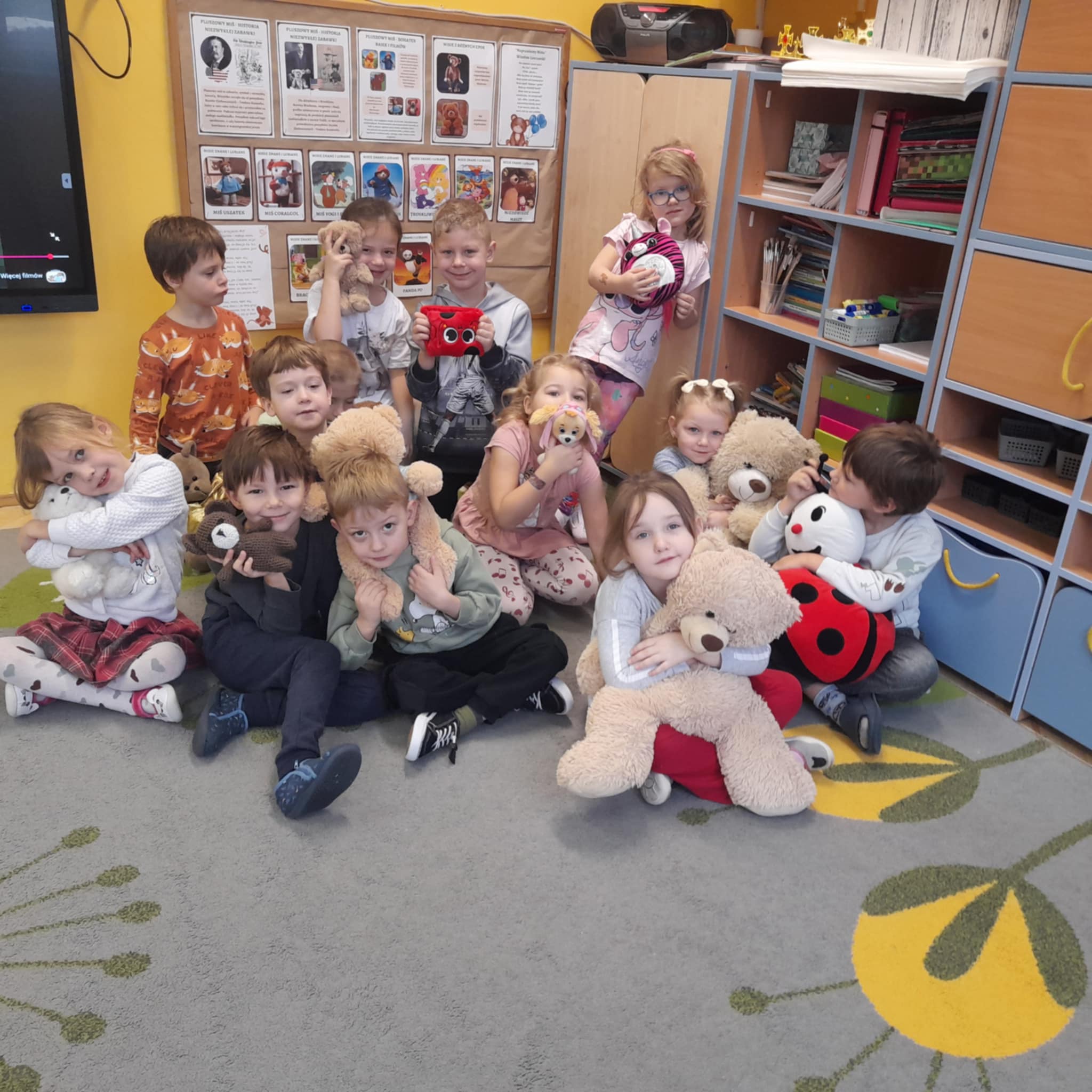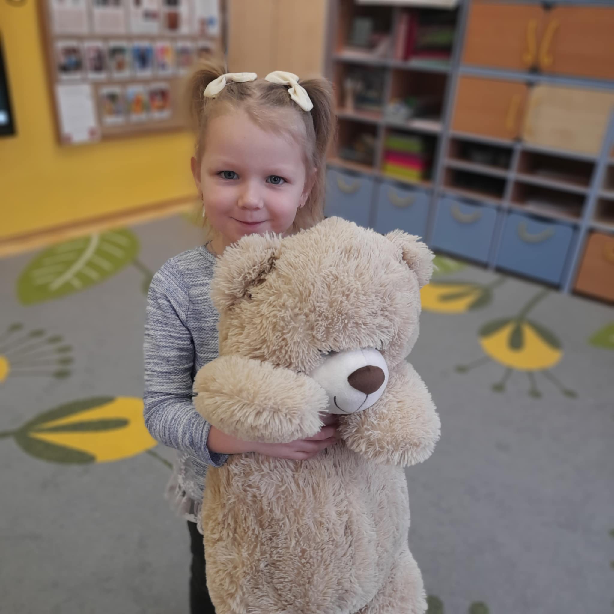 W grupie Biedronek świętowaliśmy wyjątkowy dzień – Dzień Pluszowego Misia! Od rana w sali panowała radosna atmosfera, a dzieci z entuzjazmem uczestniczyły w przygotowanych aktywnościach. Najpierw każdy przedszkolak mógł wykazać się kreatywnością, malując misie farbami. Powstały kolorowe, wesołe prace pełne dziecięcej wyobraźni. Następnie wspólnie tworzyliśmy książeczkę o misiach, w której Biedronki opowiadały, rysowały i wymyślały własne misiowe historie. Dużo radości sprawiło też kolorowanie sweterków z misiami, co pozwoliło dzieciom poćwiczyć spostrzegawczość i dobór barw. Jednak największą atrakcją okazały się jadalne misie z wafli ryżowych, nutelli, bananów i borówek. Dzieci z ogromnym zaangażowaniem ozdabiały swoje „misiowe buźki”, a później z apetytem je zajadały. Na zakończenie dnia Biedronki nauczyły się nowej piosenki o misiu, którą z dumą zaprezentowały podczas zajęć. To był dzień pełen uśmiechu, zabawy i misiowej magii – dokładnie taki, jaki lubią nasze Biedronki!