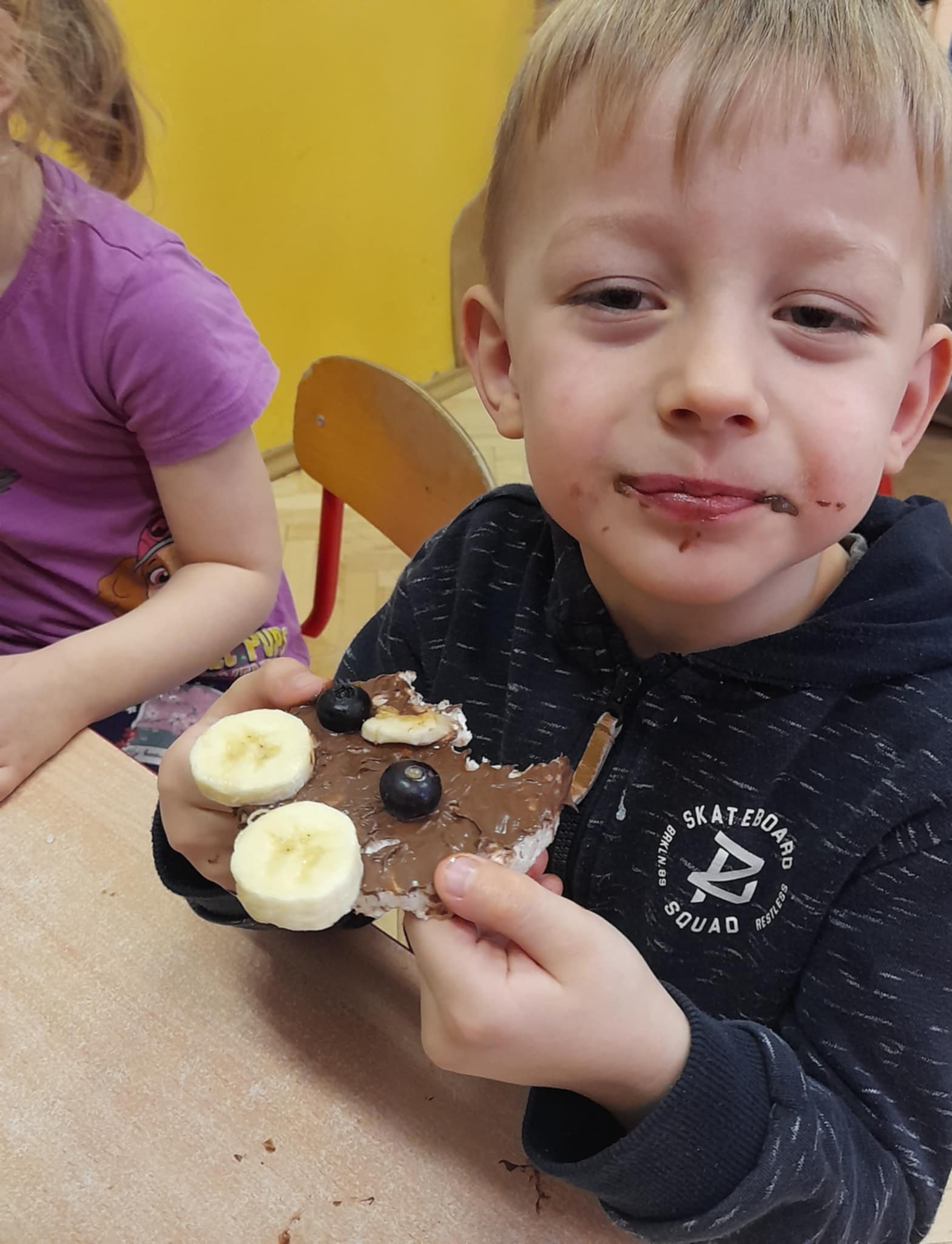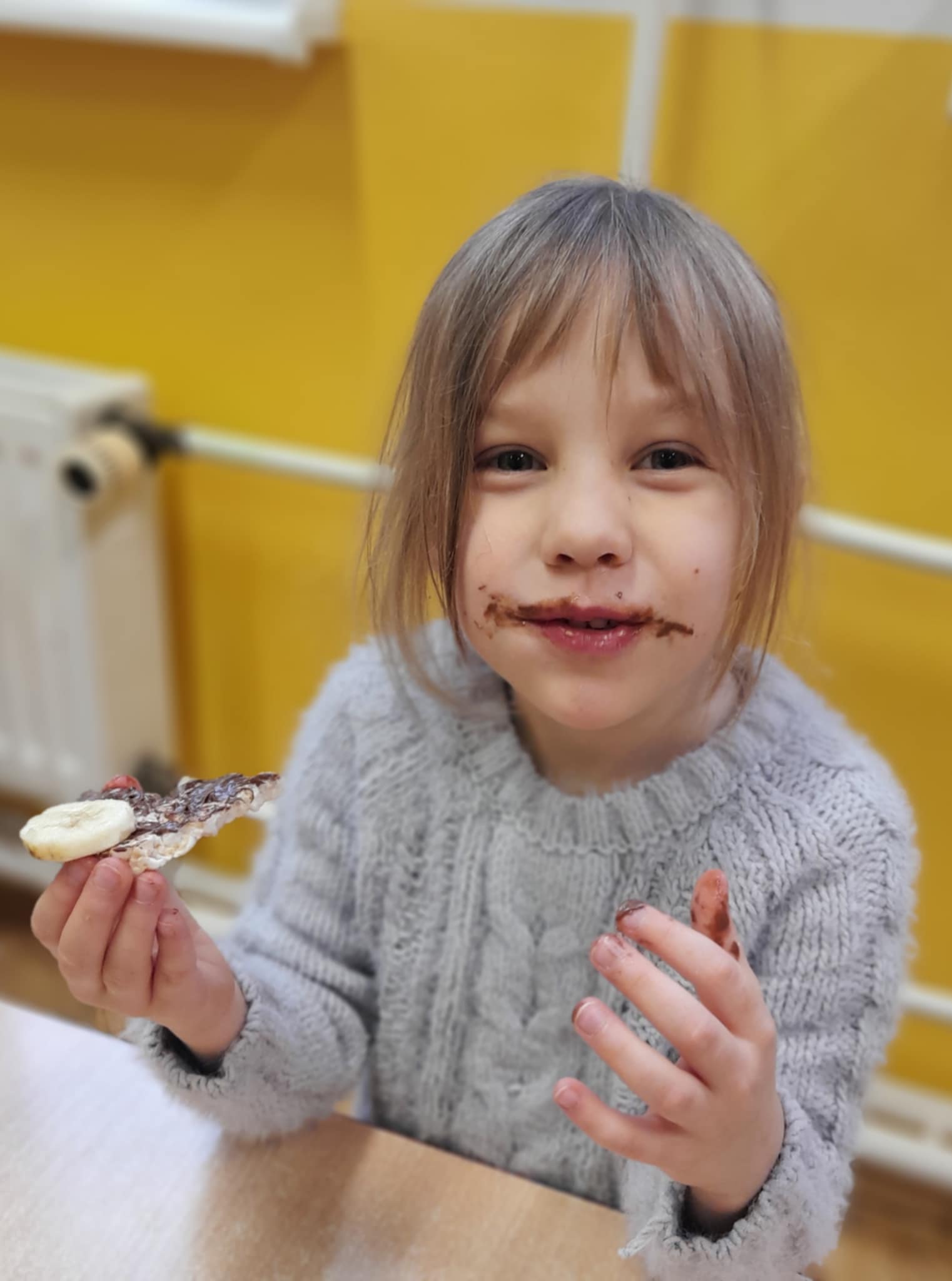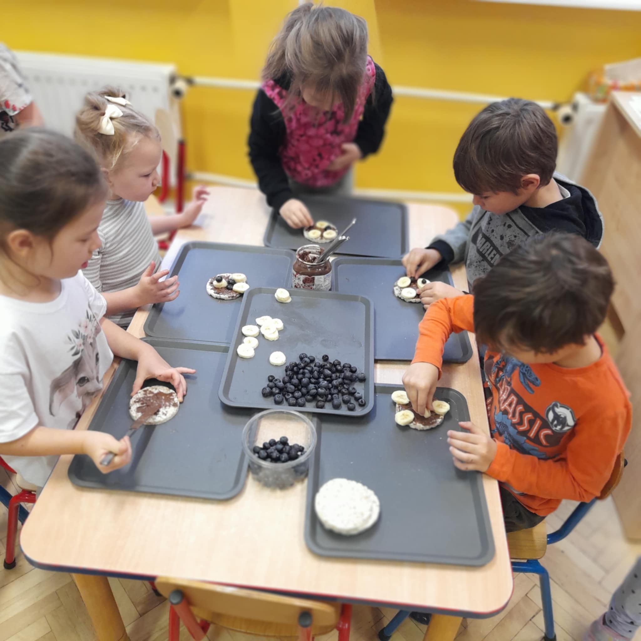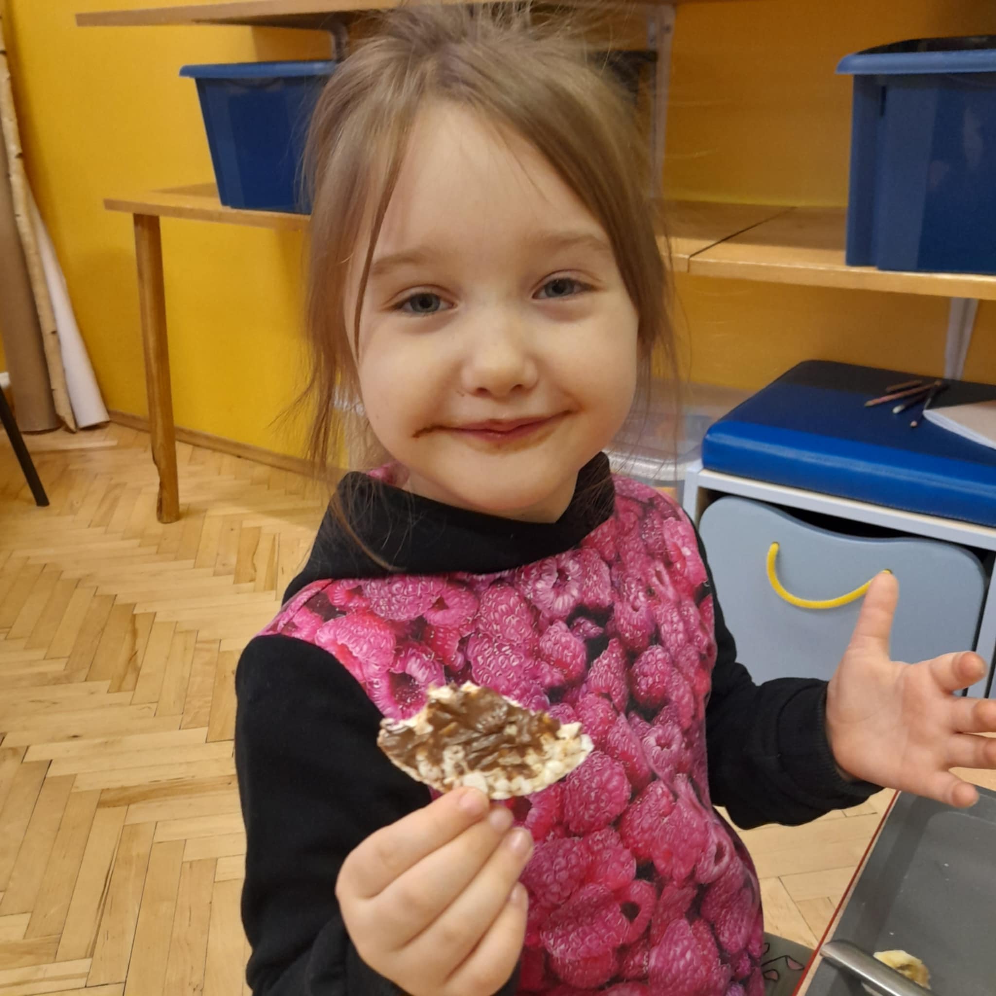 W grupie Biedronek świętowaliśmy wyjątkowy dzień – Dzień Pluszowego Misia! Od rana w sali panowała radosna atmosfera, a dzieci z entuzjazmem uczestniczyły w przygotowanych aktywnościach. Najpierw każdy przedszkolak mógł wykazać się kreatywnością, malując misie farbami. Powstały kolorowe, wesołe prace pełne dziecięcej wyobraźni. Następnie wspólnie tworzyliśmy książeczkę o misiach, w której Biedronki opowiadały, rysowały i wymyślały własne misiowe historie. Dużo radości sprawiło też kolorowanie sweterków z misiami, co pozwoliło dzieciom poćwiczyć spostrzegawczość i dobór barw. Jednak największą atrakcją okazały się jadalne misie z wafli ryżowych, nutelli, bananów i borówek. Dzieci z ogromnym zaangażowaniem ozdabiały swoje „misiowe buźki”, a później z apetytem je zajadały. Na zakończenie dnia Biedronki nauczyły się nowej piosenki o misiu, którą z dumą zaprezentowały podczas zajęć. To był dzień pełen uśmiechu, zabawy i misiowej magii – dokładnie taki, jaki lubią nasze Biedronki!