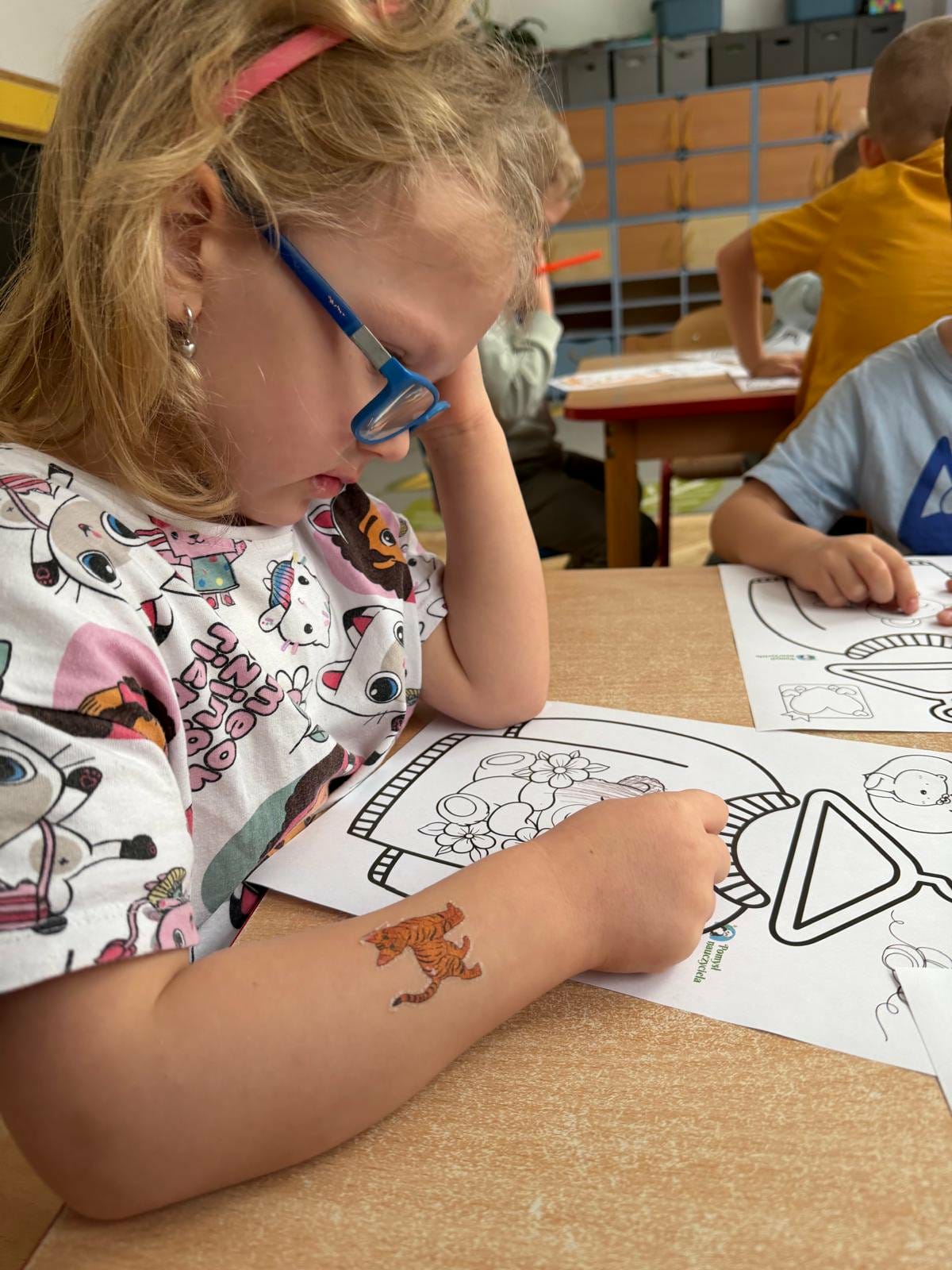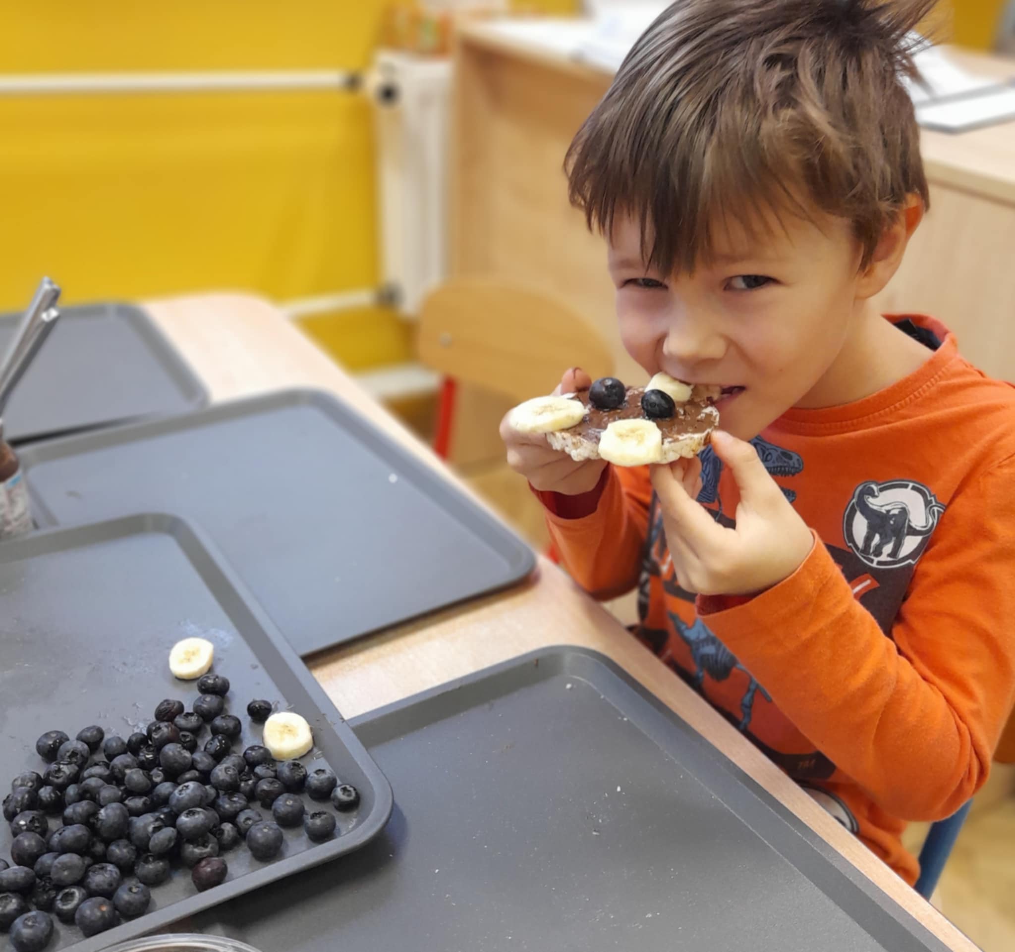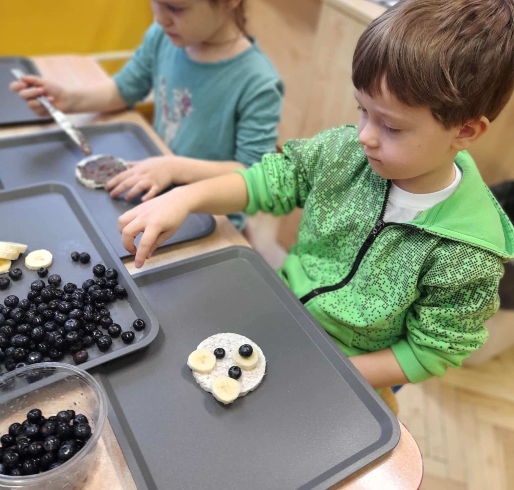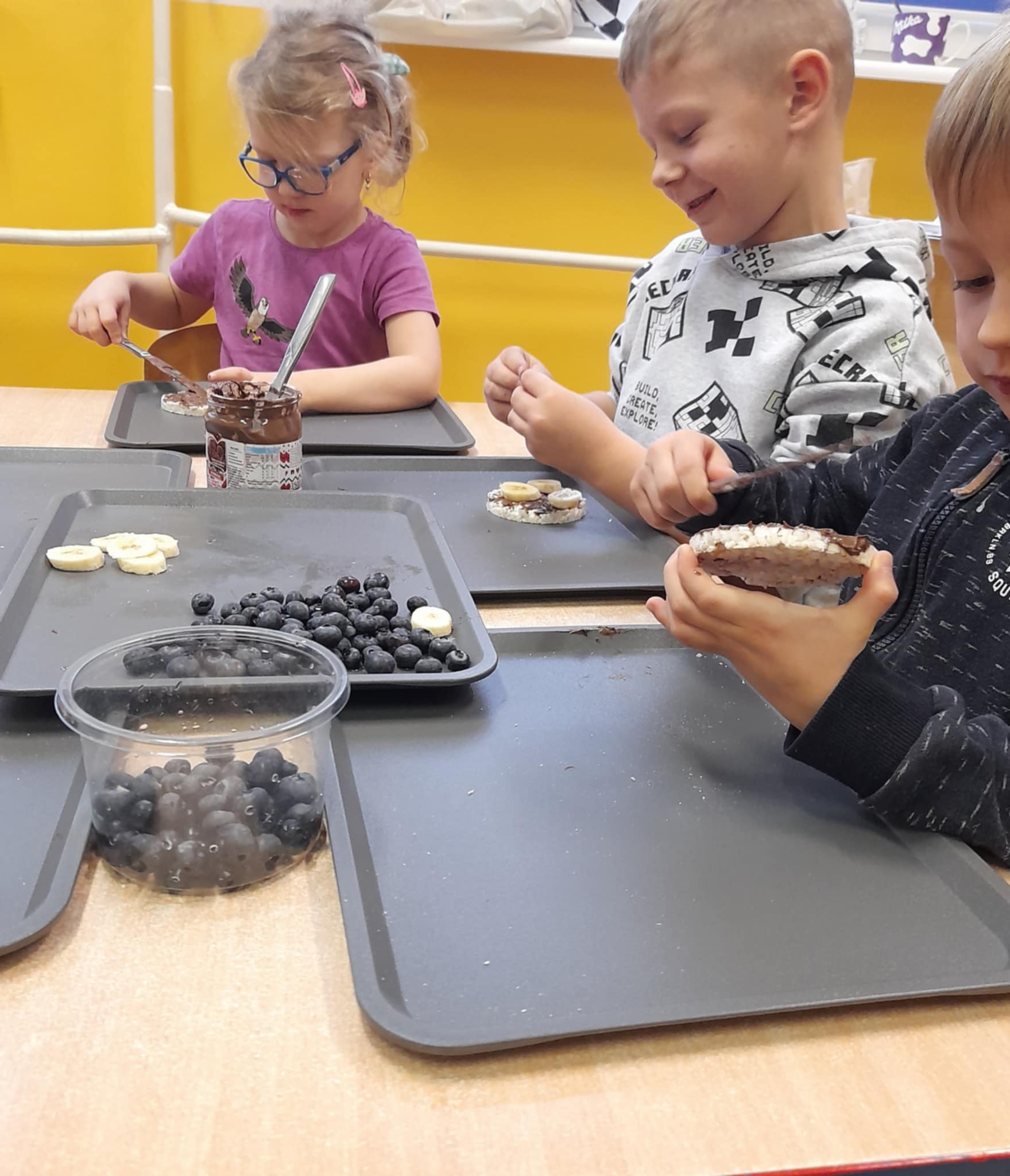 W grupie Biedronek świętowaliśmy wyjątkowy dzień – Dzień Pluszowego Misia! Od rana w sali panowała radosna atmosfera, a dzieci z entuzjazmem uczestniczyły w przygotowanych aktywnościach. Najpierw każdy przedszkolak mógł wykazać się kreatywnością, malując misie farbami. Powstały kolorowe, wesołe prace pełne dziecięcej wyobraźni. Następnie wspólnie tworzyliśmy książeczkę o misiach, w której Biedronki opowiadały, rysowały i wymyślały własne misiowe historie. Dużo radości sprawiło też kolorowanie sweterków z misiami, co pozwoliło dzieciom poćwiczyć spostrzegawczość i dobór barw. Jednak największą atrakcją okazały się jadalne misie z wafli ryżowych, nutelli, bananów i borówek. Dzieci z ogromnym zaangażowaniem ozdabiały swoje „misiowe buźki”, a później z apetytem je zajadały. Na zakończenie dnia Biedronki nauczyły się nowej piosenki o misiu, którą z dumą zaprezentowały podczas zajęć. To był dzień pełen uśmiechu, zabawy i misiowej magii – dokładnie taki, jaki lubią nasze Biedronki!
