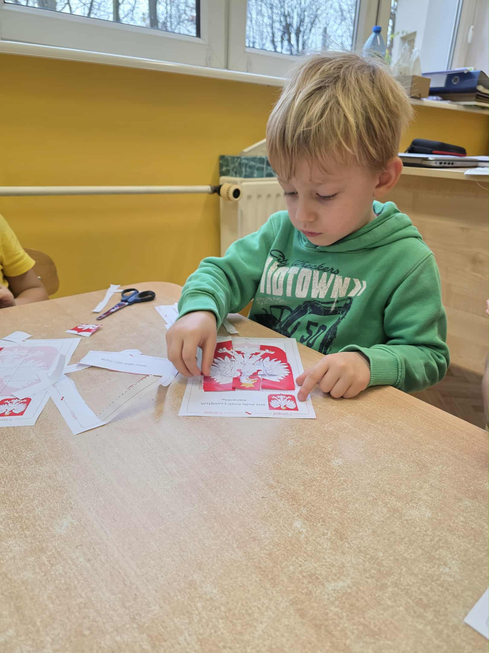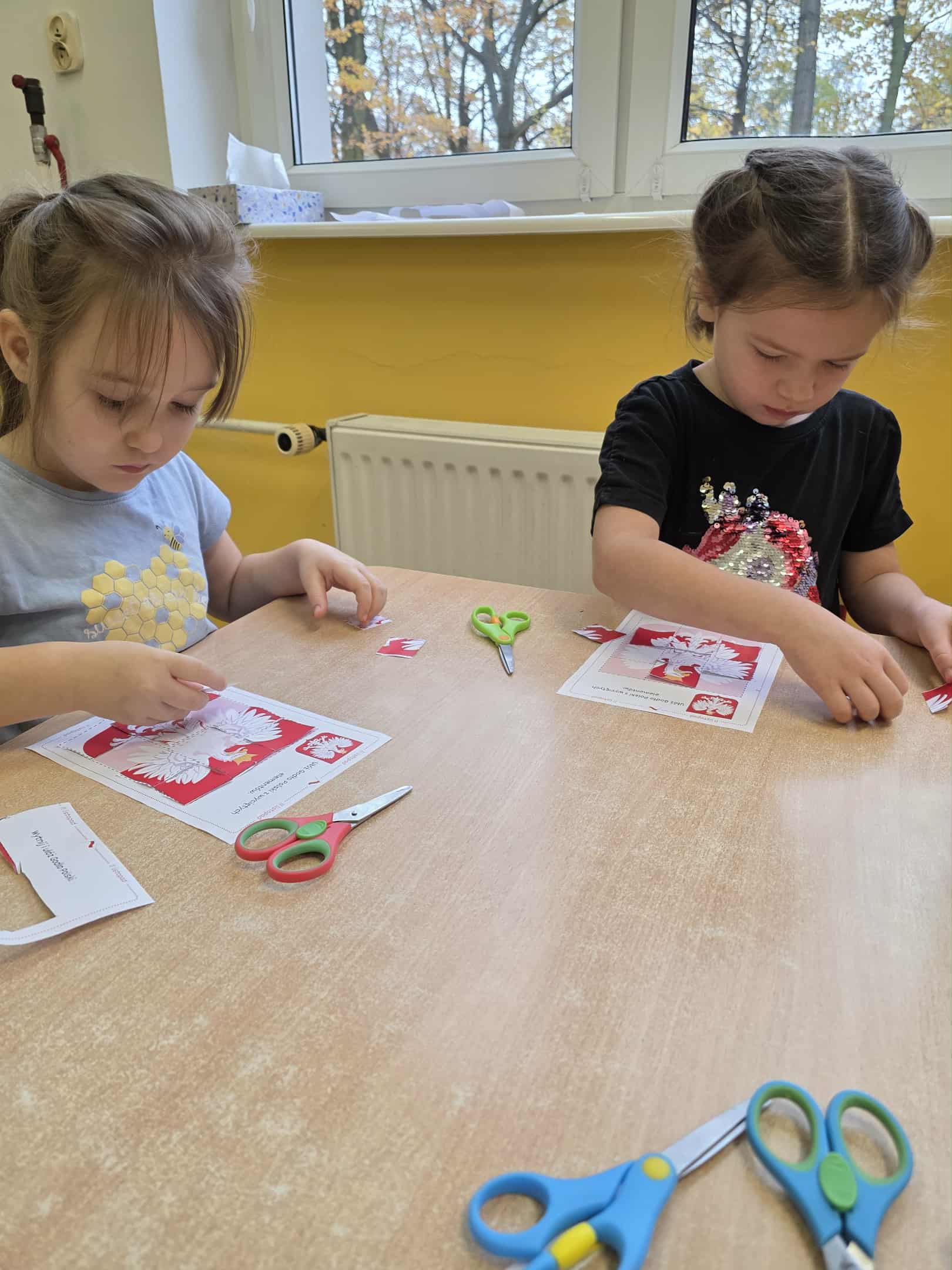 W tym tygodniu Biedronki rozmawiały o bardzo ważnym święcie – 11 listopada, Narodowym Święcie Niepodległości. Przedszkolaki dowiedziały się, dlaczego ten dzień jest tak wyjątkowy dla wszystkich Polaków i jak ważne są symbole narodowe – flaga, godło i hymn. Podczas zajęć plastycznych dzieci z zapałem wycinały nożyczkami elementy godła Polski, a następnie układały je jak puzzle, tworząc piękne biało-czerwone orły. Praca wymagała skupienia, precyzji i współpracy – ale wszystkim świetnie się udało! Rozmawialiśmy też o tym, co to znaczy być małym patriotą – dzieci mówiły, że to między innymi szanować innych, pomagać i dbać o swoją ojczyznę. To były wyjątkowe zajęcia, pełne radości, zaangażowania i dumy z bycia Polakiem!
