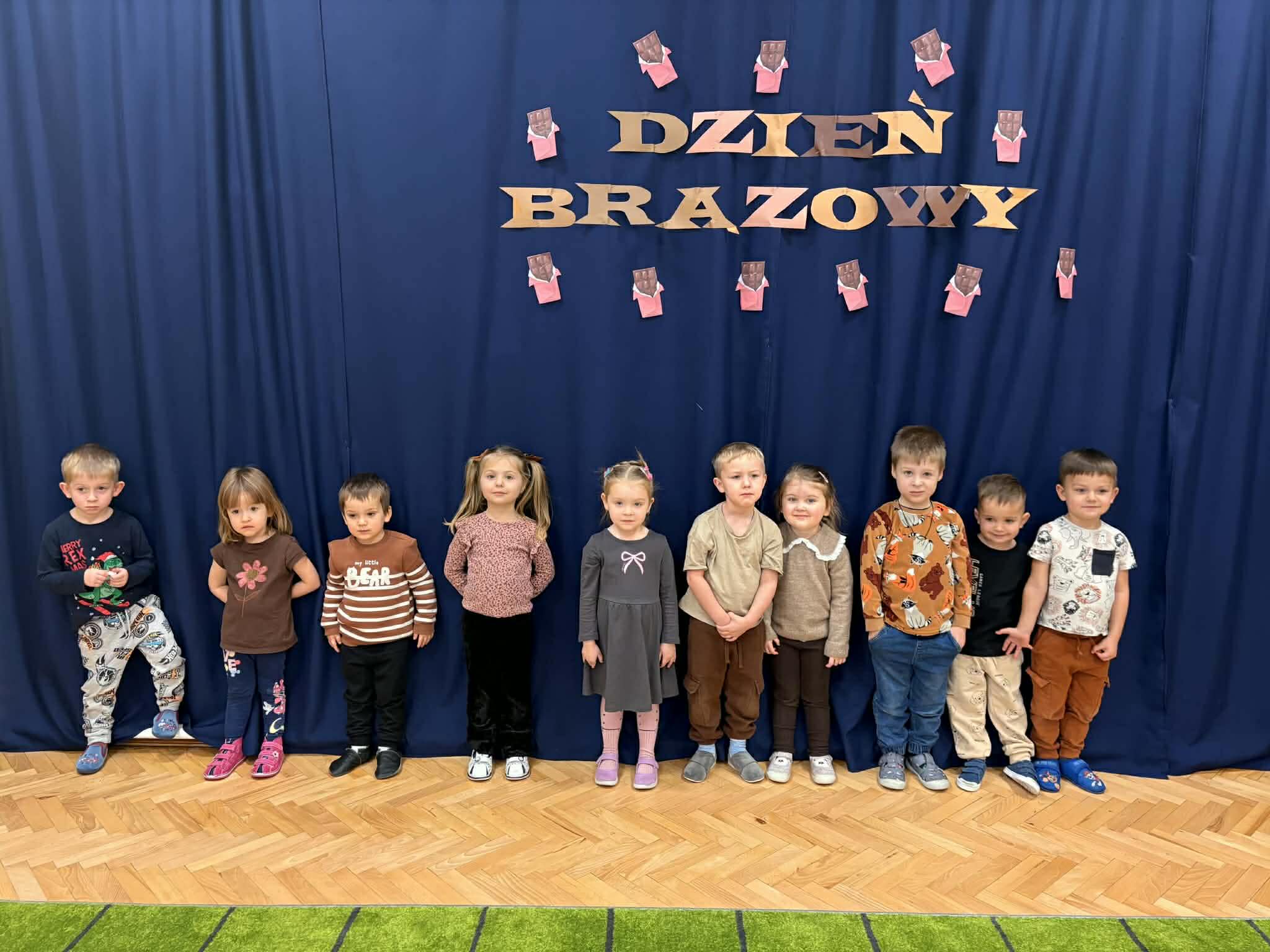 W naszym przedszkolu obchodziliśmy Dzień Brązowy. Dzieci przyszły ubrane w brązowe elementy stroju i odkrywały, gdzie w przyrodzie występuje ten kolor — m.in. w kasztanach, korze drzew czy czekoladzie. Przedszkolaki brały udział w zabawach sensorycznych z jesiennymi naturalnymi materiałami, wyszukiwały brązowe przedmioty w sali oraz stworzyły prace plastyczne w odcieniach brązu. Był to dzień pełen radości, zabawy i utrwalania znajomości koloru. Na zakończenie dnia dzieci spróbowały brązowych przekąsek, takich jak pełnoziarniste chrupki, rodzynki czy herbatniki, rozmawiając o zdrowym odżywianiu.