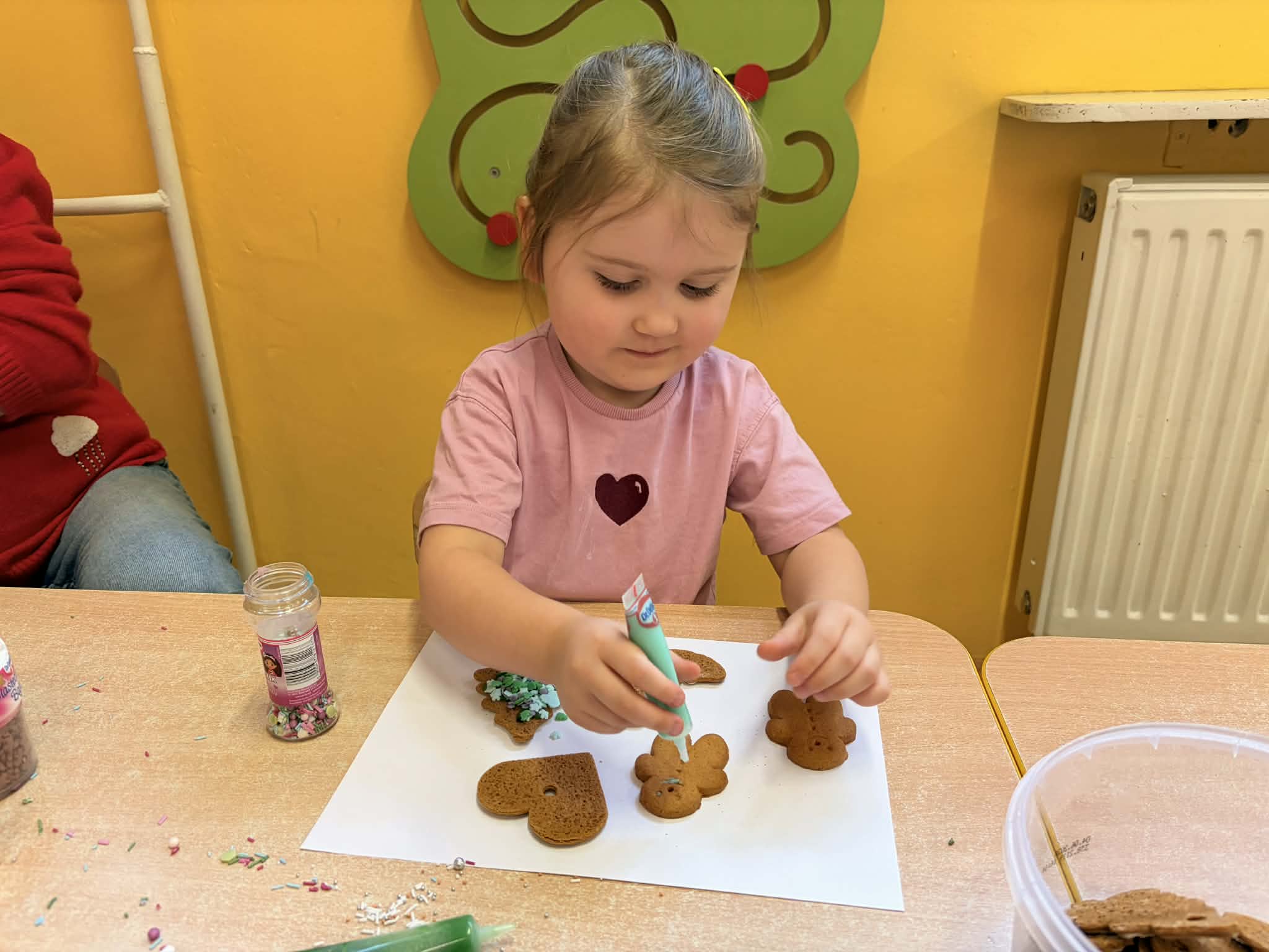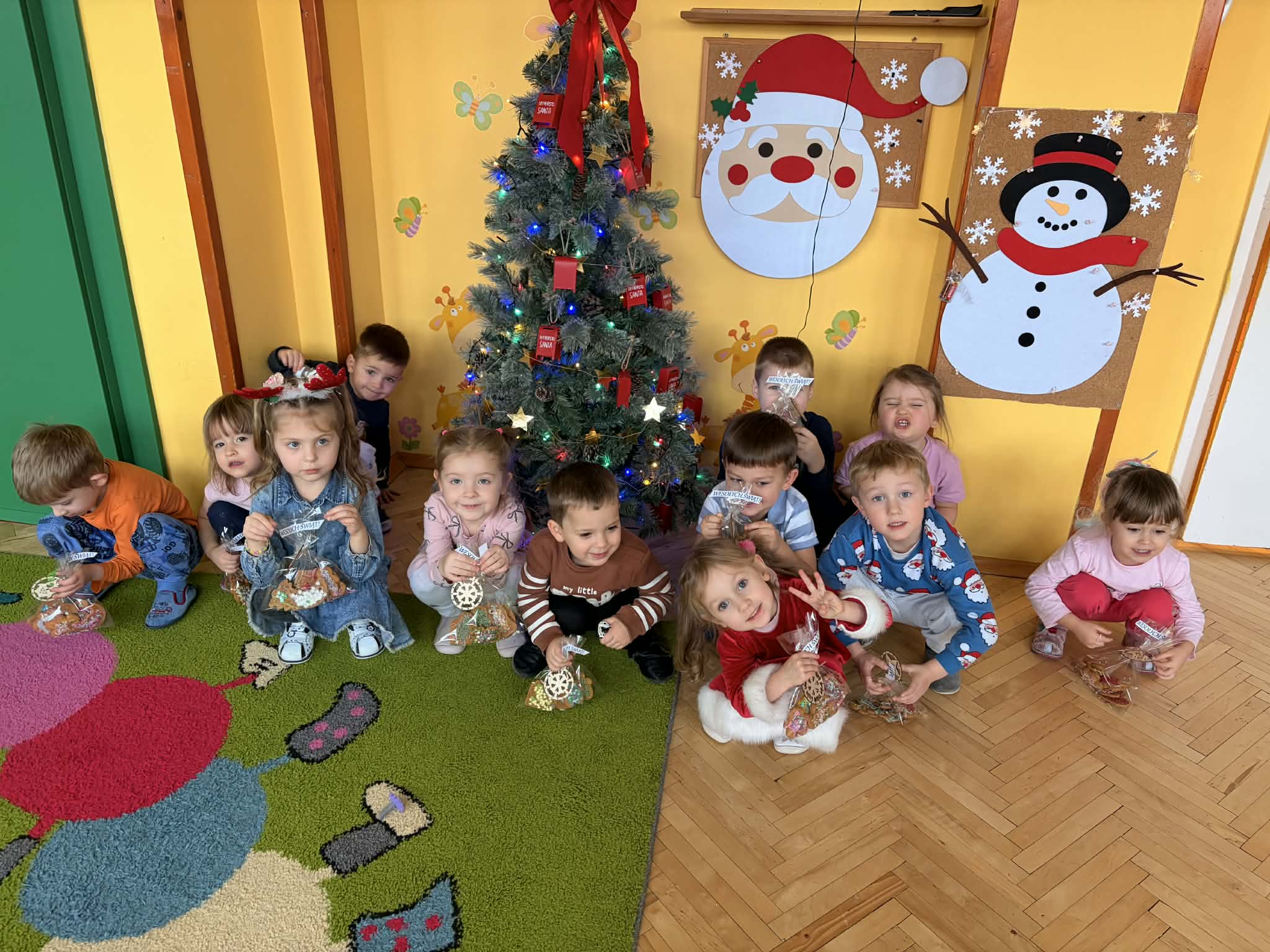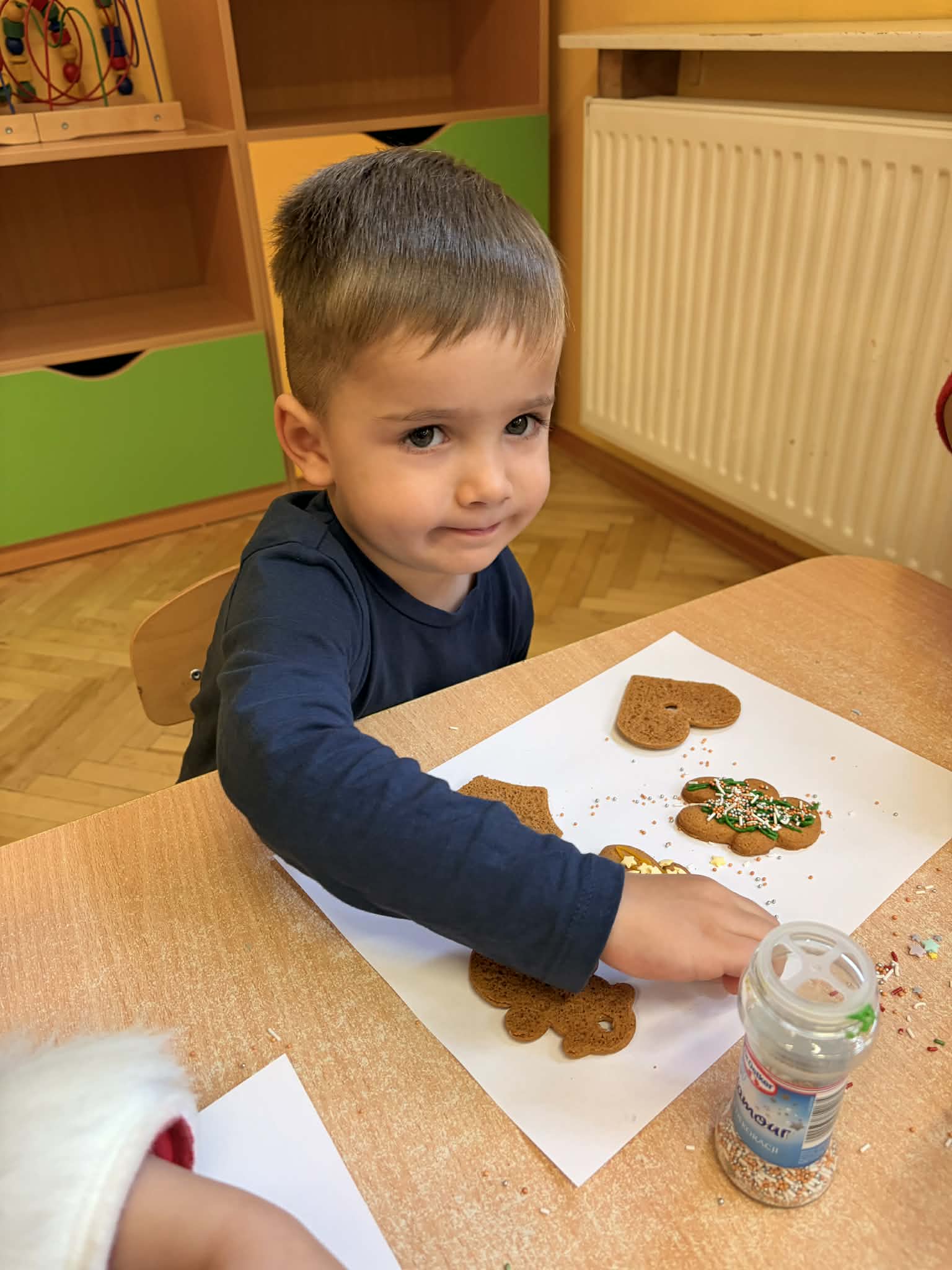 Dzieci z grupy „Maluszki" z wielką radością dekorowały świąteczne ciasteczka, wykorzystując ozdoby przyniesione z domu. Powstały piękne, kolorowe i bardzo pomysłowe wypieki, które wprowadziły wszystkich w świąteczny nastrój. Serdecznie dziękuję Rodzicom za przygotowanie i przyniesienie ozdób oraz pisaków, dzięki którym dzieci mogły twórczo i radośnie spędzić ten czas. Z okazji Świąt Bożego Narodzenia życzę Państwu chwil pełnych ciszy i wzruszeń, czasu zatrzymanego przy blasku choinkowych świateł, radości płynącej z dziecięcych uśmiechów oraz spokoju, który zostaje w sercu na długo - Pani Monika B.
