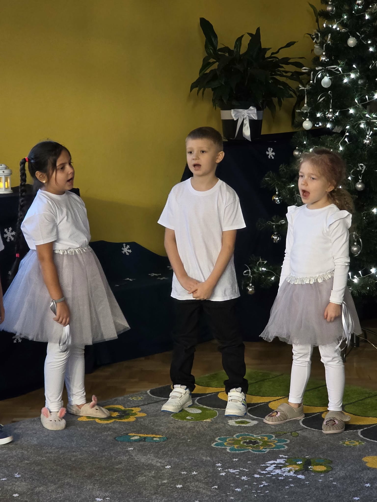 Dzieci z grupy Motylki zaprezentowały piękne jasełka, które na długo pozostaną w naszej pamięci. Wyjątkowy występ prowadziła Gwiazdka, niosąca radość i miłość, która przeniosła widzów przez świąteczną opowieść i wprowadziła wszystkich w niezwykły klimat Świąt Bożego Narodzenia. Mali artyści z ogromnym zaangażowaniem wcielili się w swoje role, zachwycając publiczność śpiewem oraz grą aktorską. Przedstawienie było bardzo wzruszające i poruszające serca – pełne ciepła, emocji i świątecznego przesłania. Występ Motylków przypomniał nam o tym, co w Świętach najważniejsze: miłości, dobroci i byciu razem. Serdecznie gratulujemy dzieciom wspaniałego występu oraz dziękujemy wszystkim, którzy przyczynili się do przygotowania tego wyjątkowego wydarzenia.