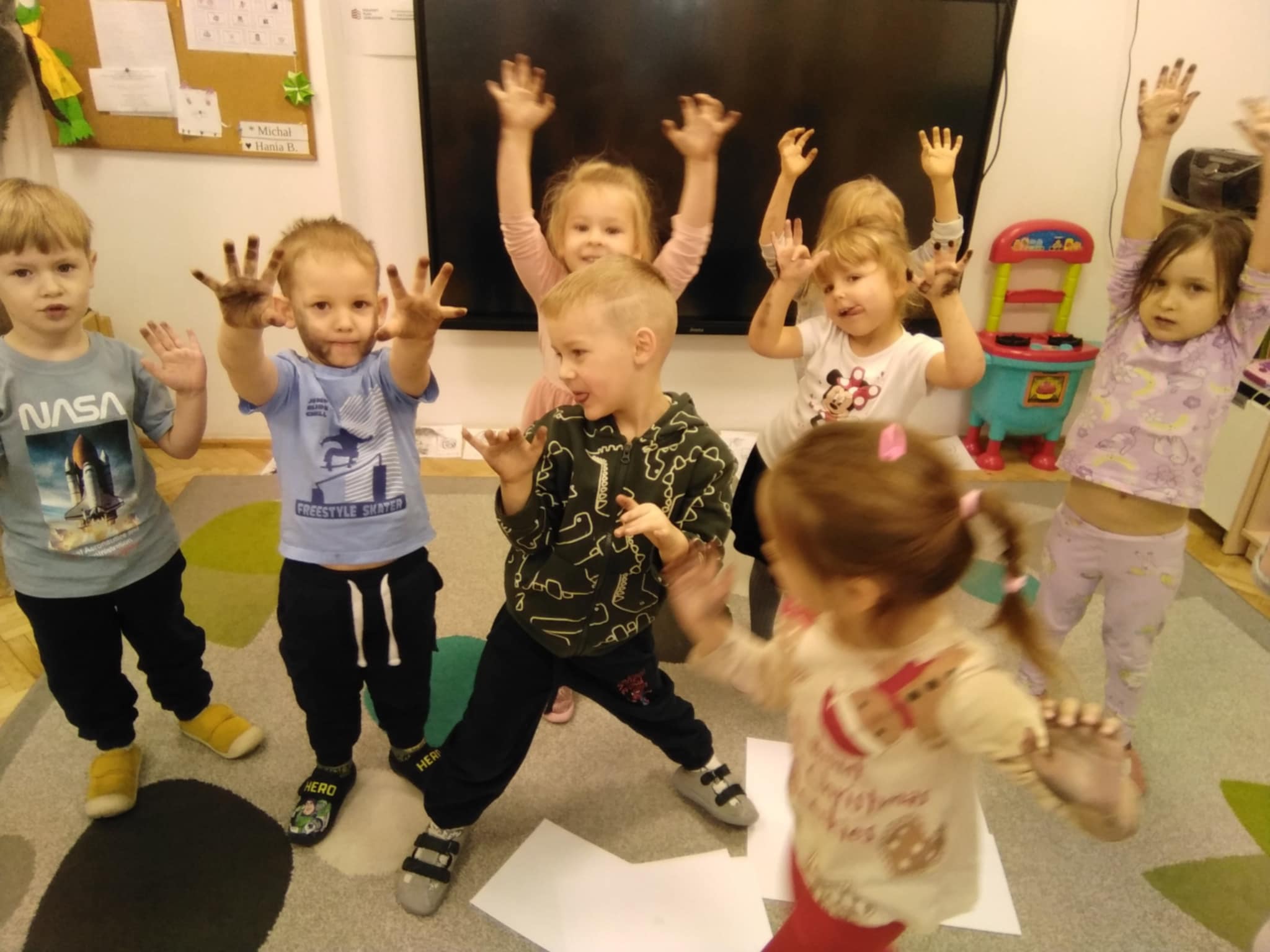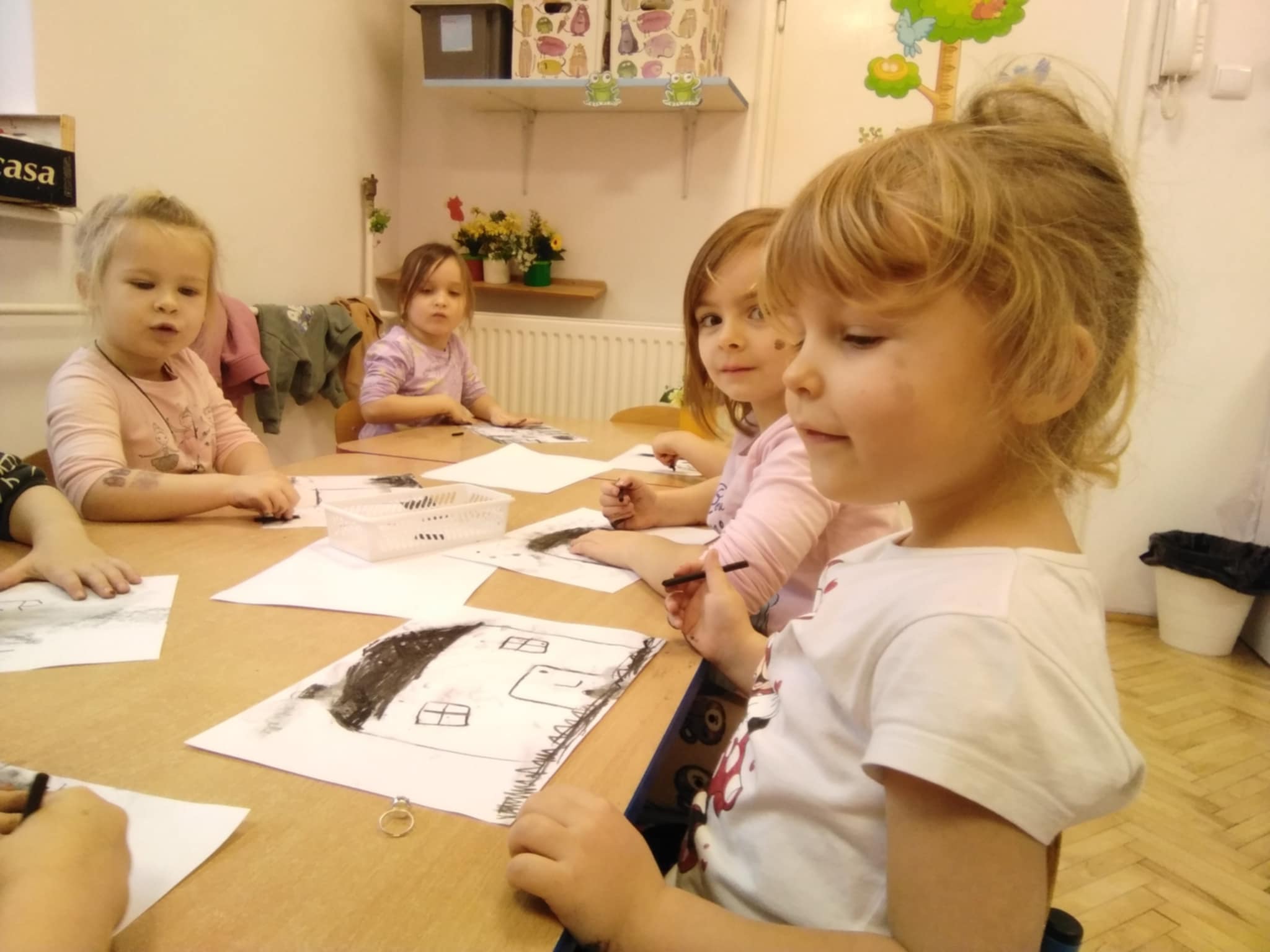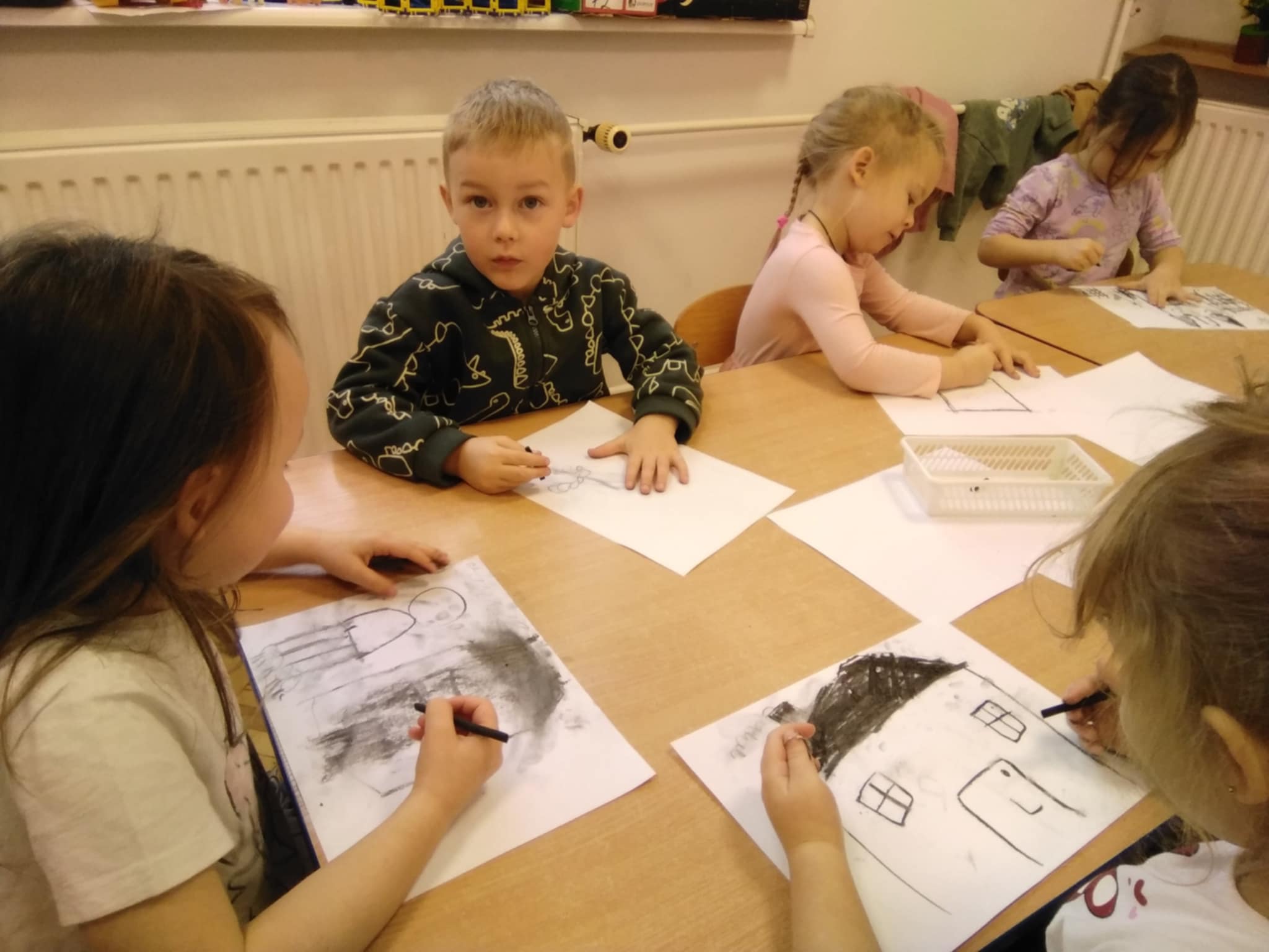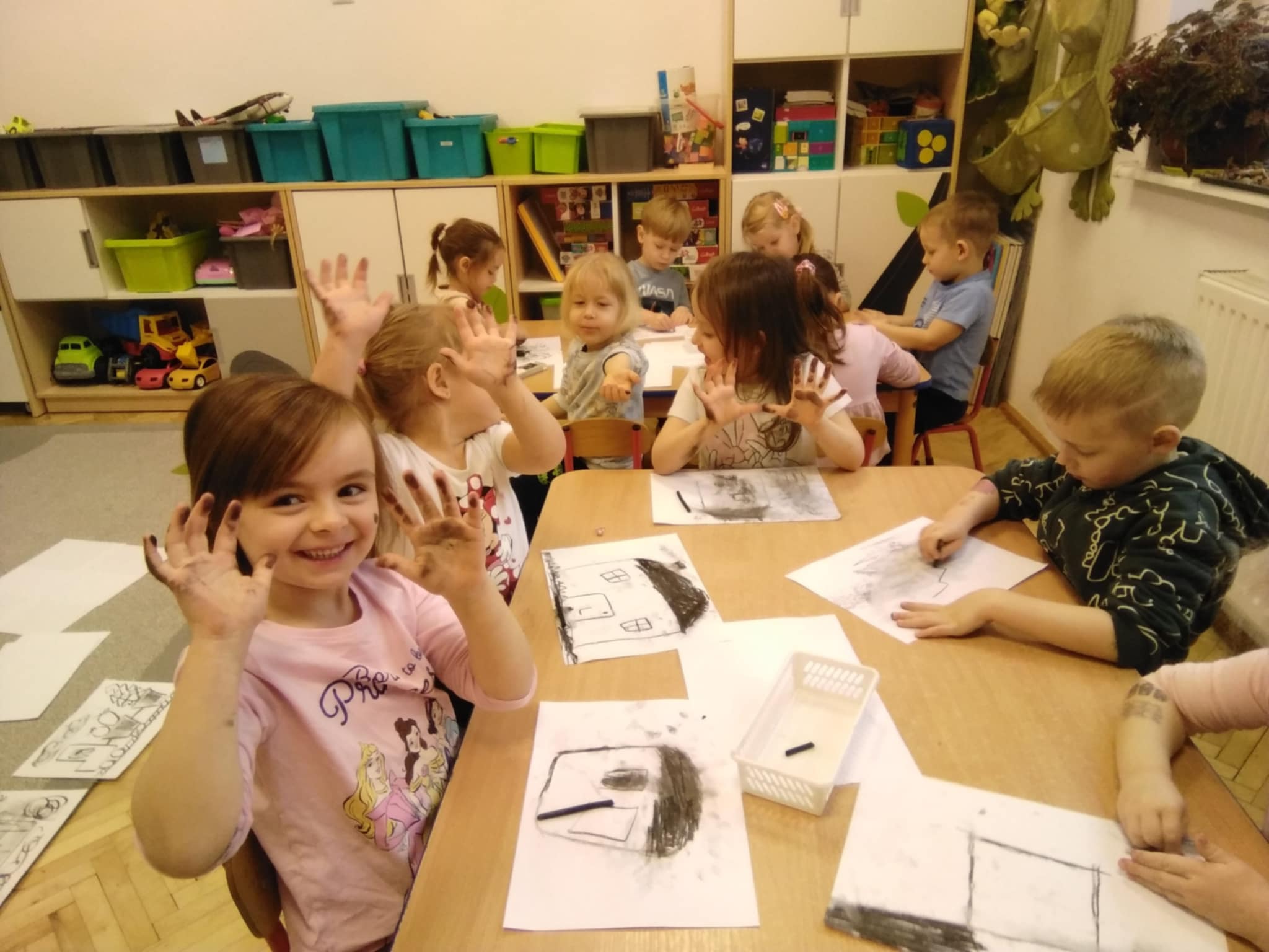 Na Barbórkę uczyliśmy się troche ślonskiej godki: Jo ci powiadom, nie kochej malyrza. Pokochej górnika. Po śpiewaniu było rysowanie czarnym węglem, oj, było czarno wszędzie, ale fajnie.