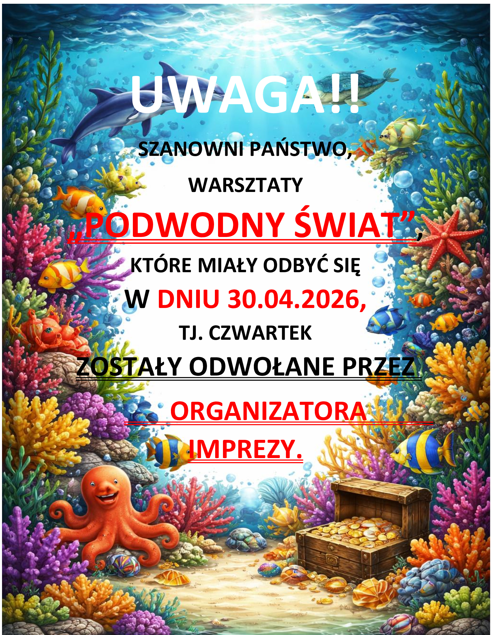 UWAGA!!! Warsztaty "Podwodny Świat" zostały odwołane przez organizatora.