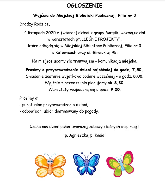 29.04.2026 Motylki - wyjście na koncert muzyczny do MDK na Koszutce.