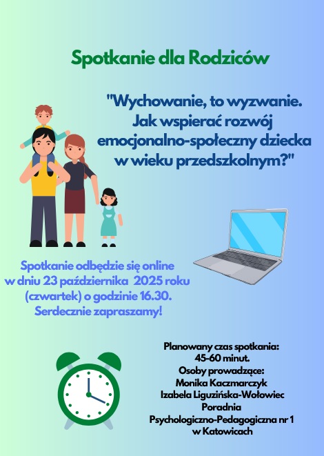 Prosimy o zapoznanie się z treścią ogłoszenia. Link do spotkania:
