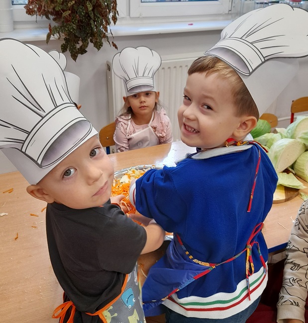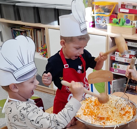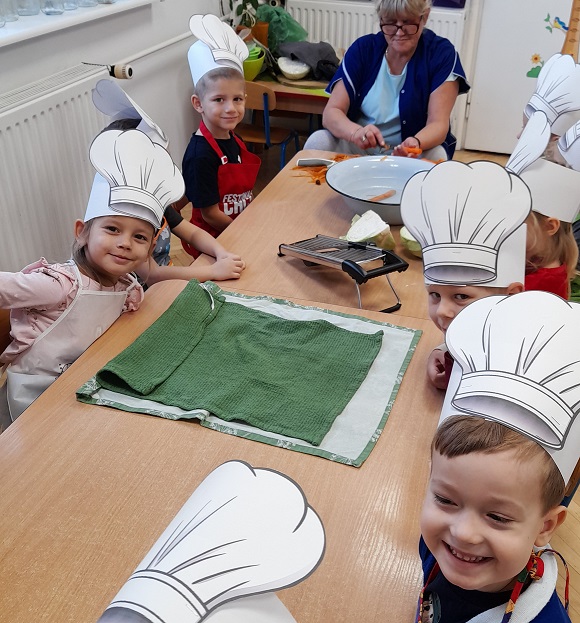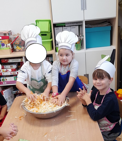 - Potarliśmy również marchewkę na tarce – z zachowaniem zasad ostrożności i bezpieczeństwa!