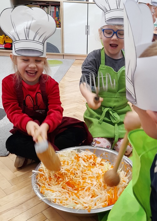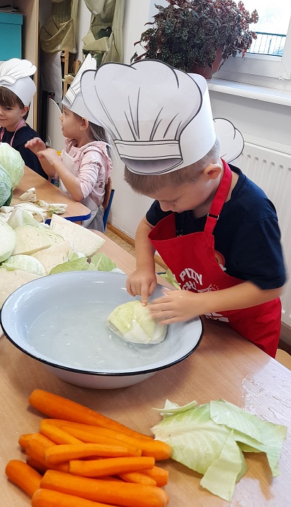 - Każdą warstwę kapusty posypywaliśmy solą.