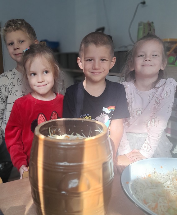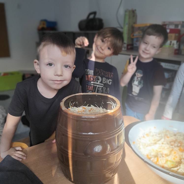 - Poszatkowaną kapustę umieściliśmy w kamionkowej beczce