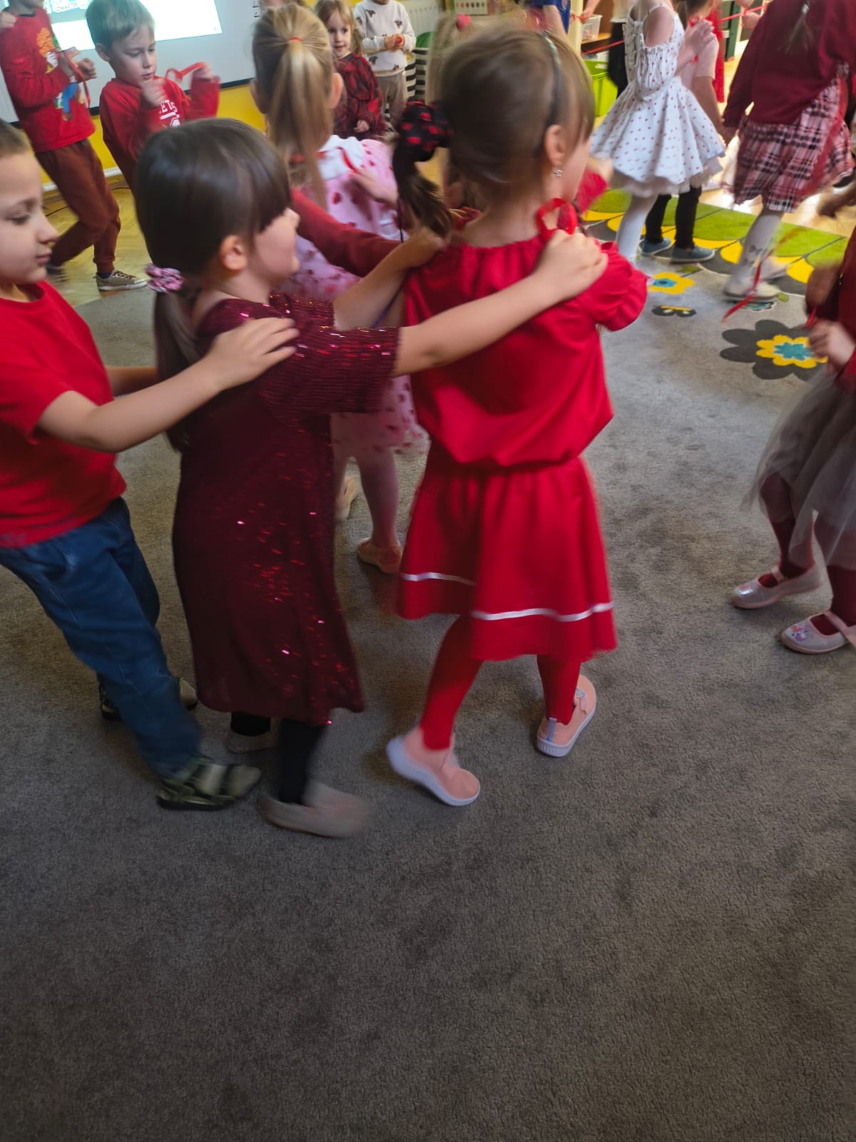 Serduszka fruwają jak ptaki, Dla koleżanki i dla kolegi to znaki. Miłe słowa dziś rozdajemy,Bo Walentynki dziś świętujem.