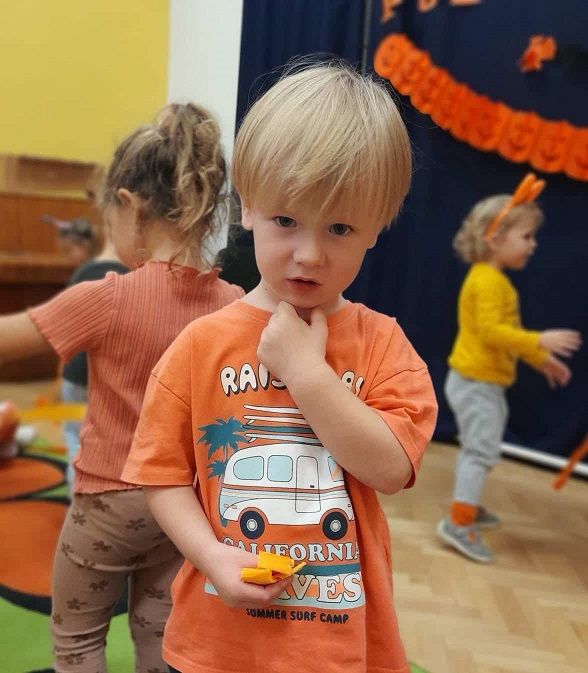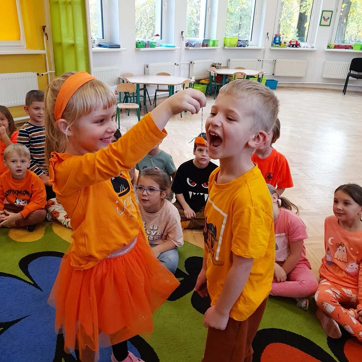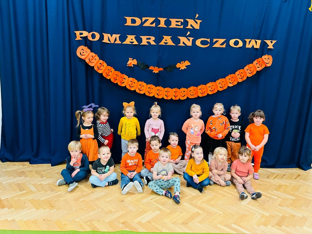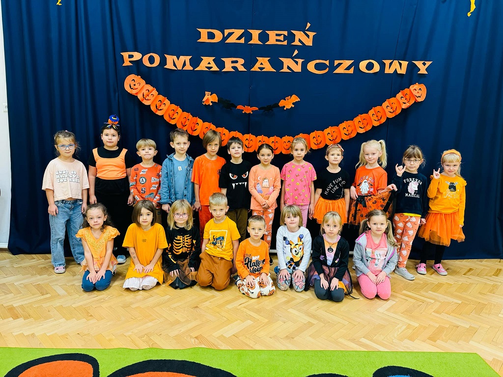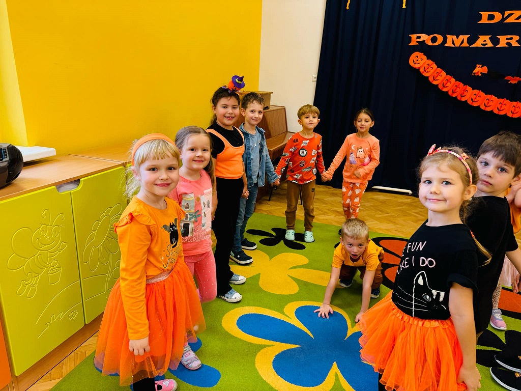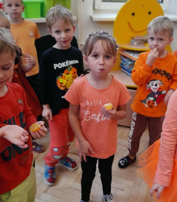 Dzisiaj w naszym przedszkolu odbył się dzień pomarańczowy podczas, którego świetnie się bawiliśmy. Wszystkie dzieci miały jakiś pomarańczowy akcent na sobie. Były wspólne zabawy, gry oraz muzyka i taniec. Przedstawiamy zdjęcia z tego wydarzenia.