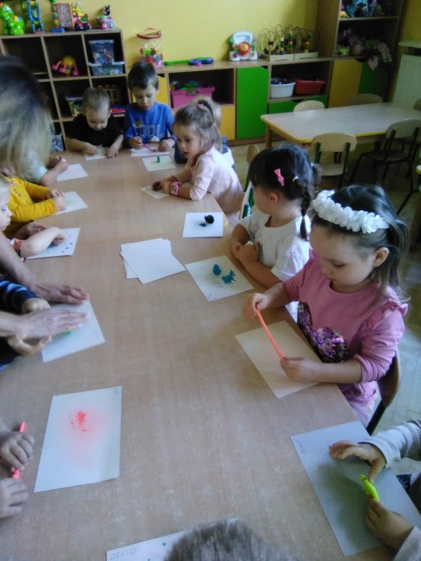 Dzisiaj Maluszki bawiły się w rozcieranie plasteliny. Zobaczcie sami.