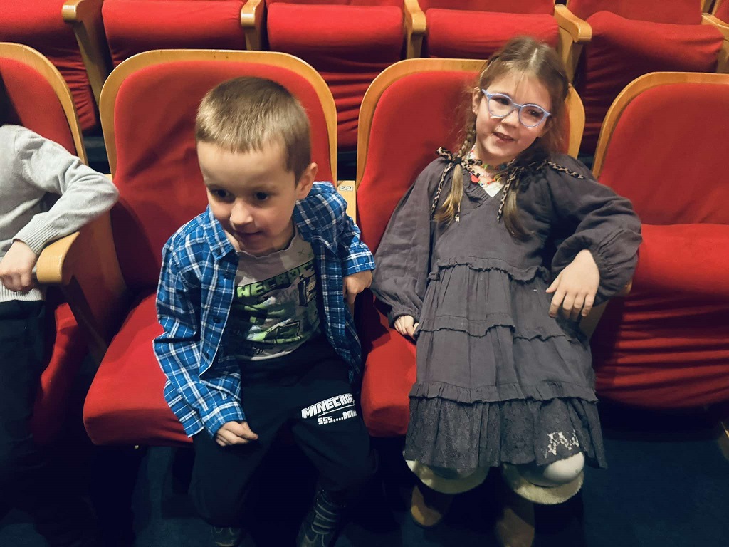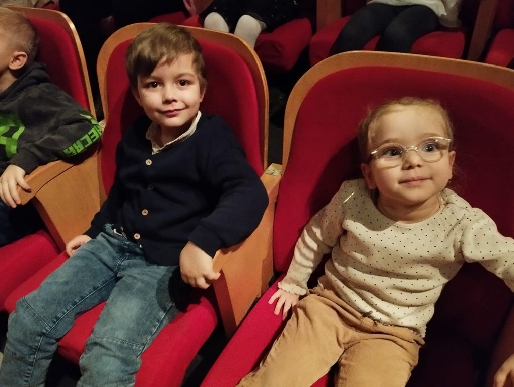 Dzisiaj dzieci z grupy: Żabki, Biedronki i Motylki udały się do Chorzowskiego Centrum Kultury na przedstawienie pt.: "Śpiąca Królewna".