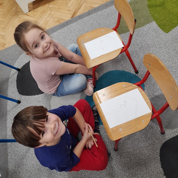 Przy okazji rozmawiamy o tym, w jaki sposób można pomóc ptakom przetrwać zimę. Wykonaliśmy też sikorkę i srokę z talerzyków papierowych!