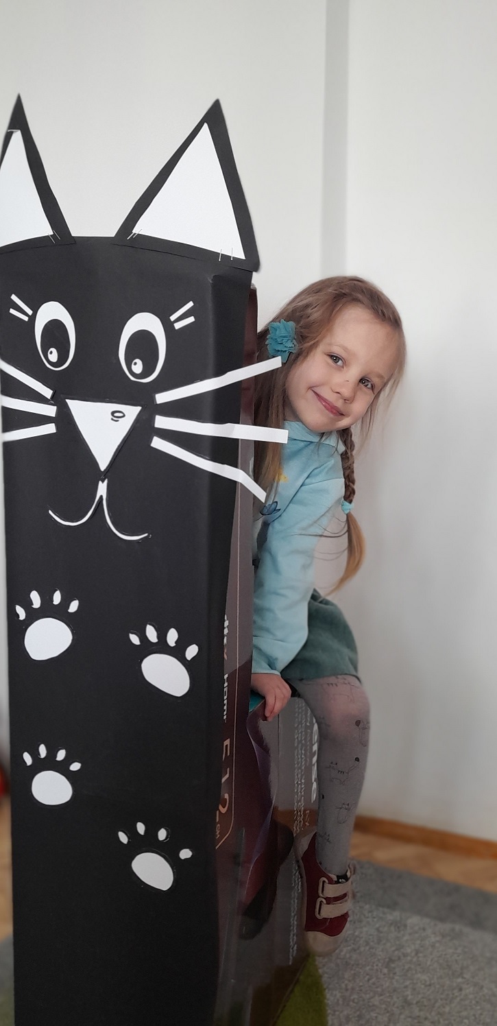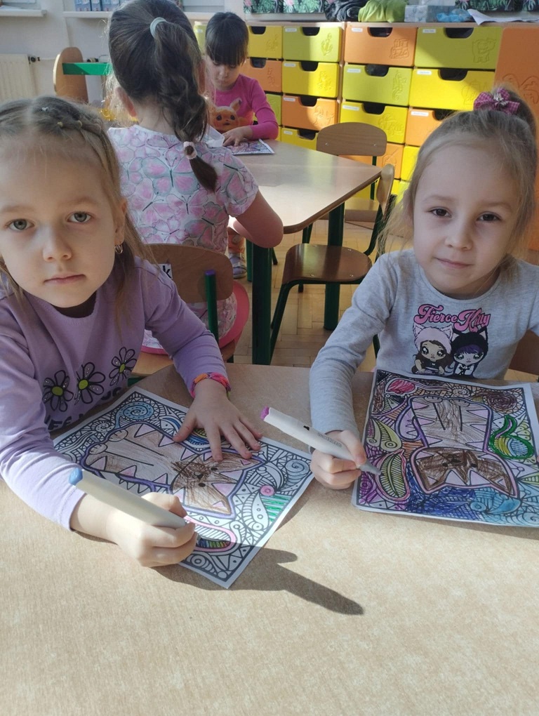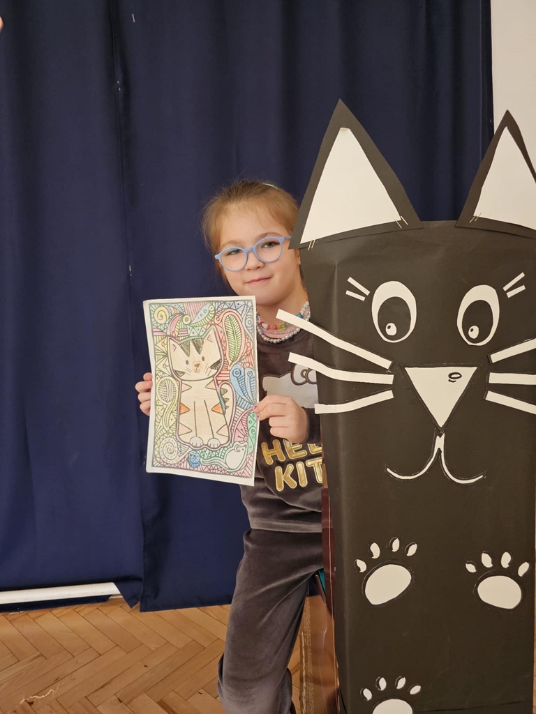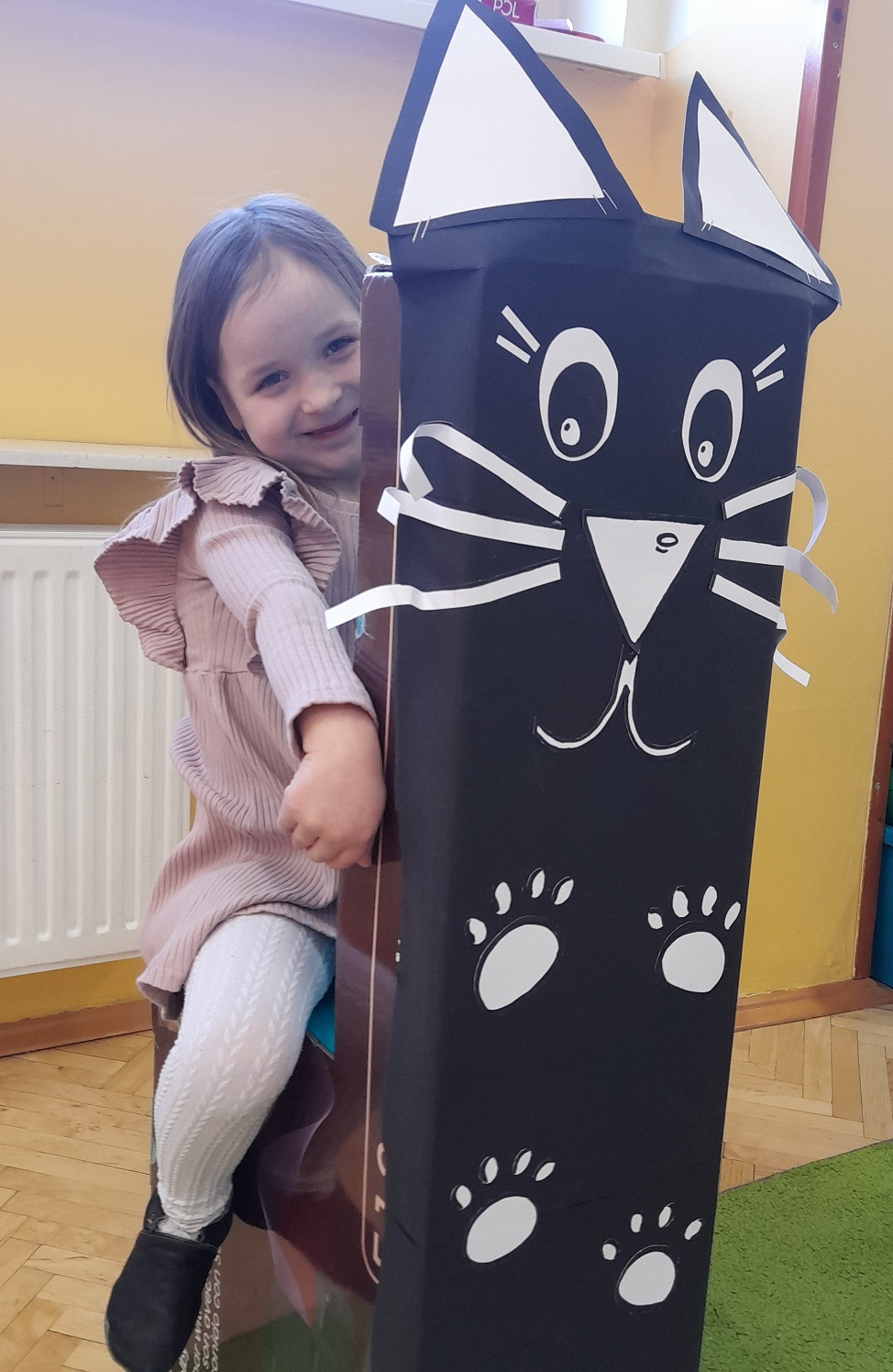 Dzieci miały dzisiaj możliwość opowiedzenia nam o swoich pupilach czyli kotach, które mają w domu. Wykonaliśmy ich podobizny, jak również bawiliśmy się z naszym kotem z papieru.