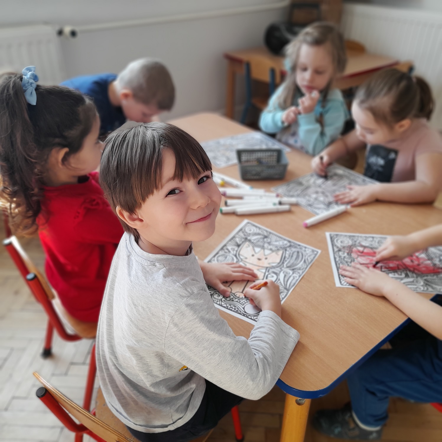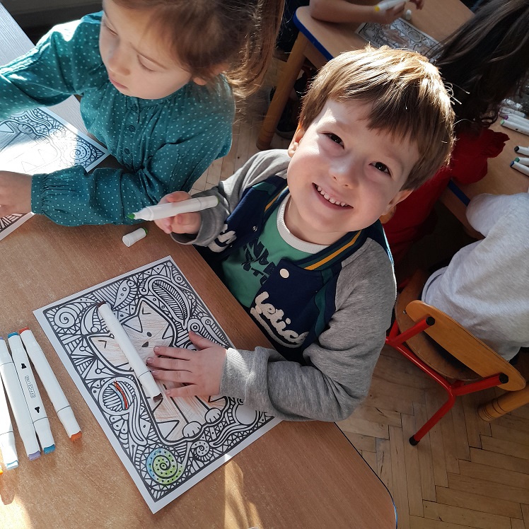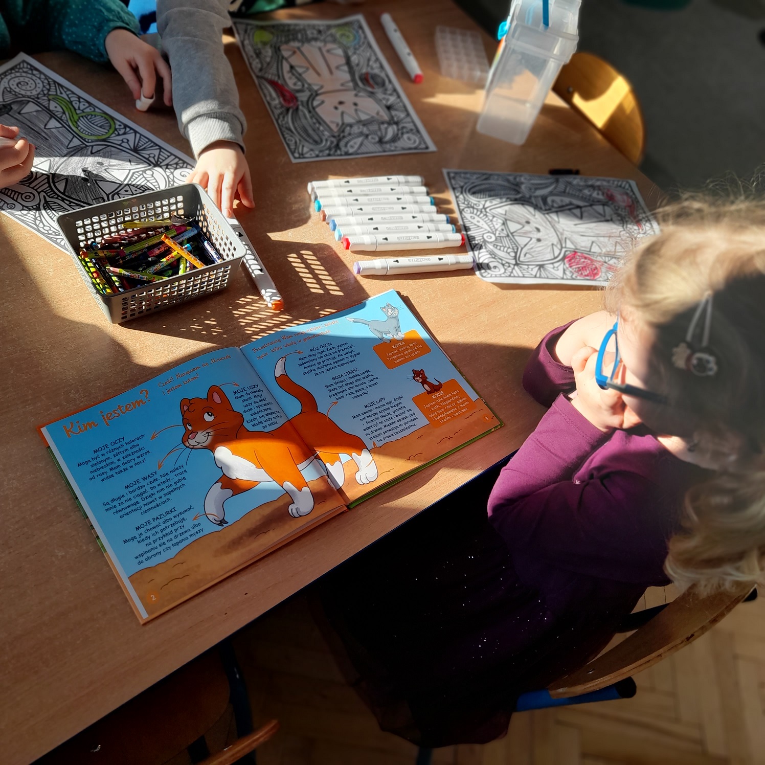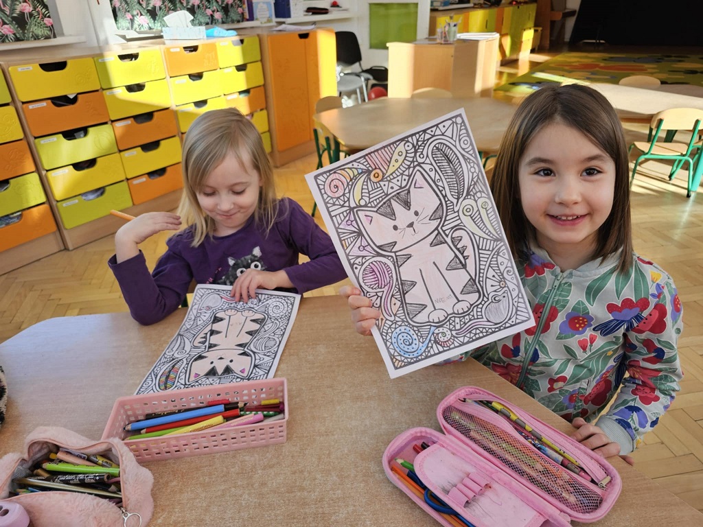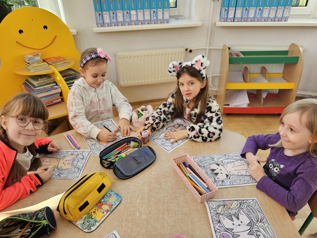 Dzieci miały dzisiaj możliwość opowiedzenia nam o swoich pupilach czyli kotach, które mają w domu. Wykonaliśmy ich podobizny, jak również bawiliśmy się z naszym kotem z papieru.