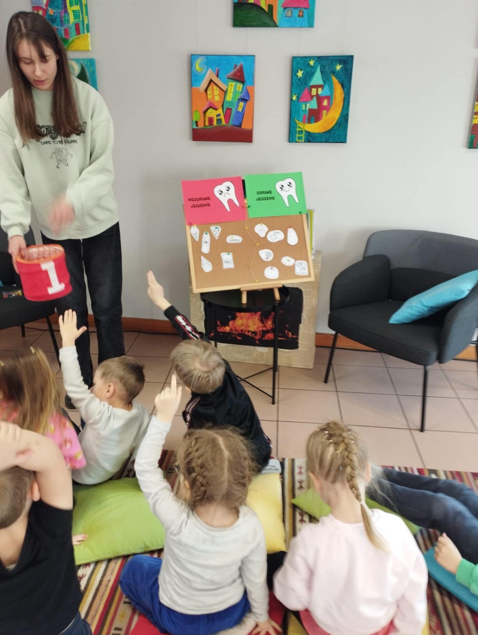 Biedronki na kolejnych zajęciach z cyklu: "Czytanie na dywanie" w Miejskiej Bibliotece Publicznej w Katowicach Załężu.