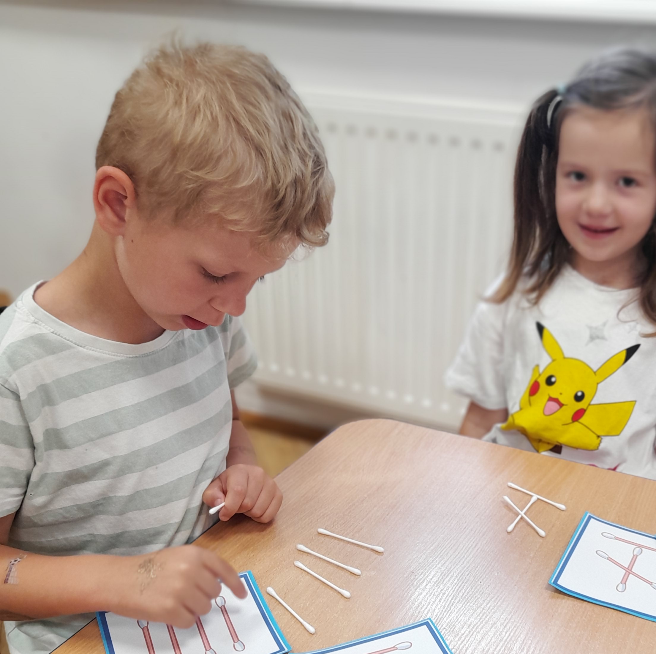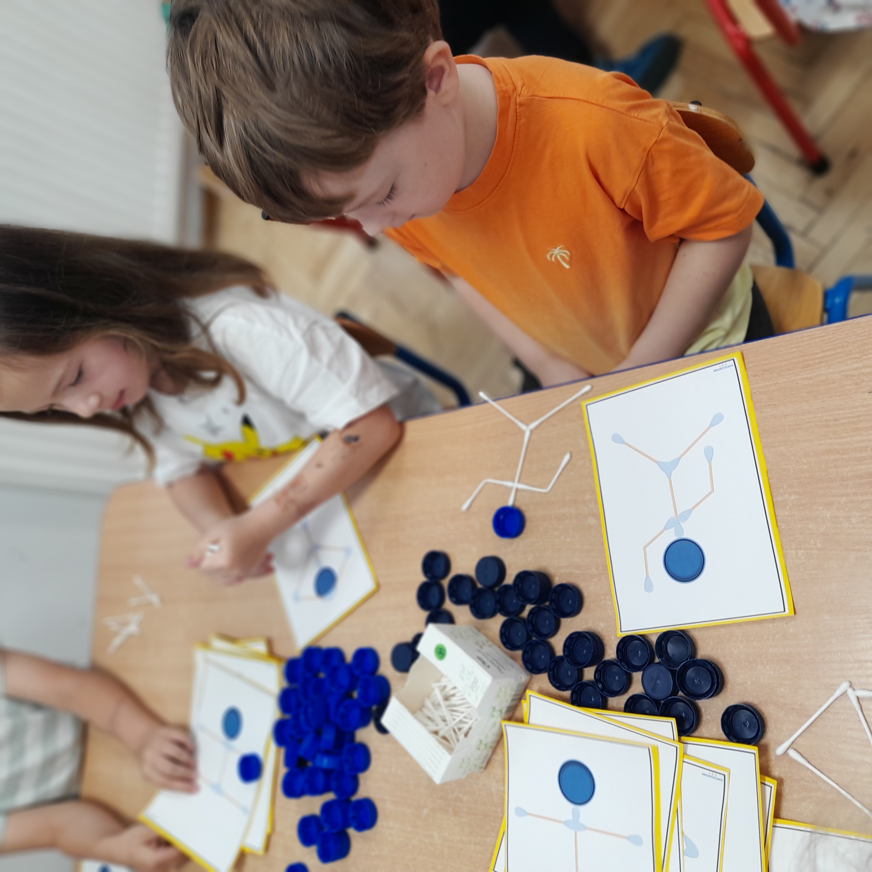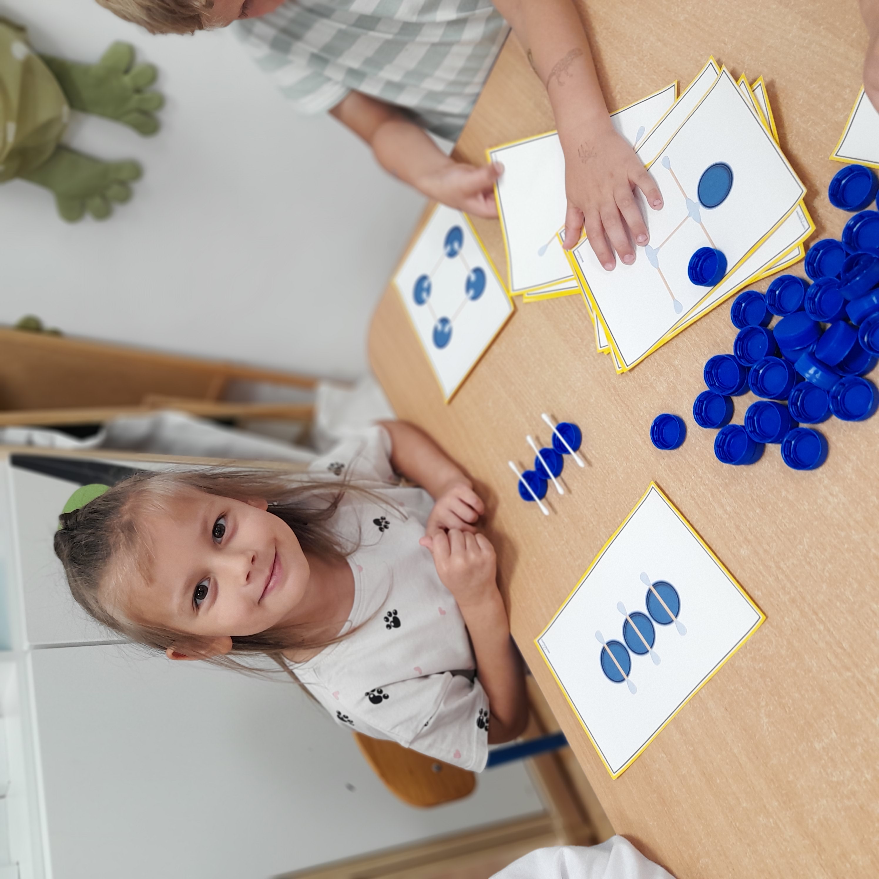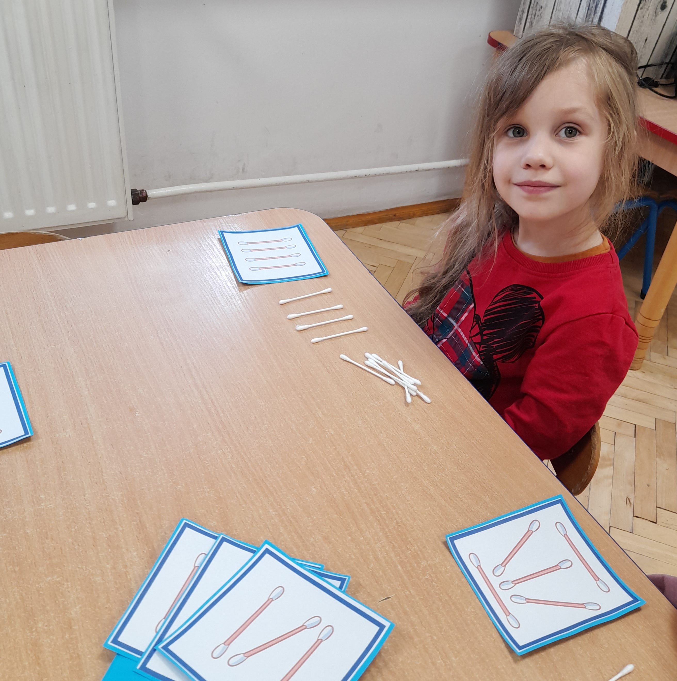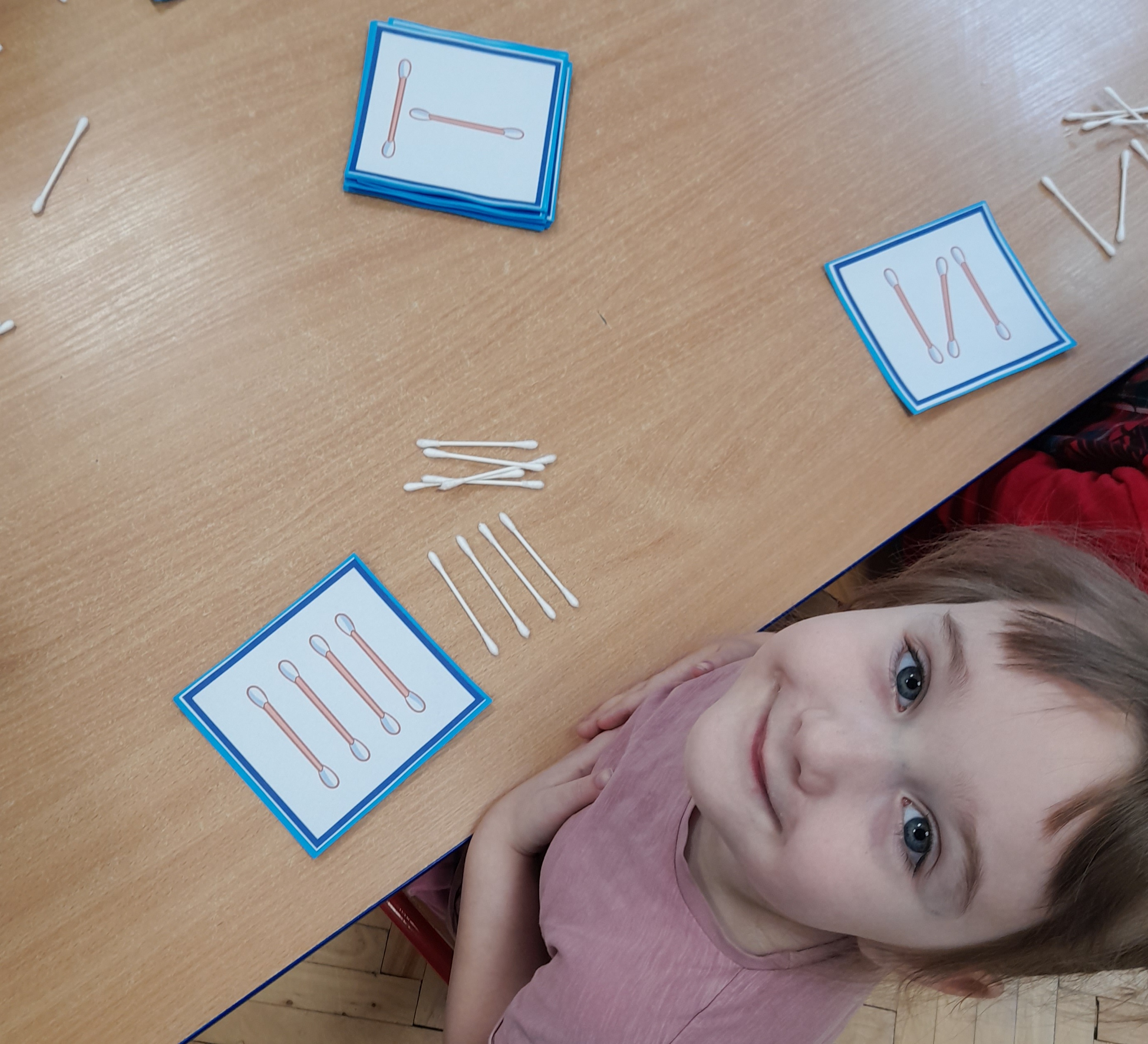 Zabawy z patyczkami i zakrętkami - zabawy rozwijające umiejętności: odwzorowywania, koordynacji wzrokowo-ruchowej oraz skupienia uwagi - Żabki.