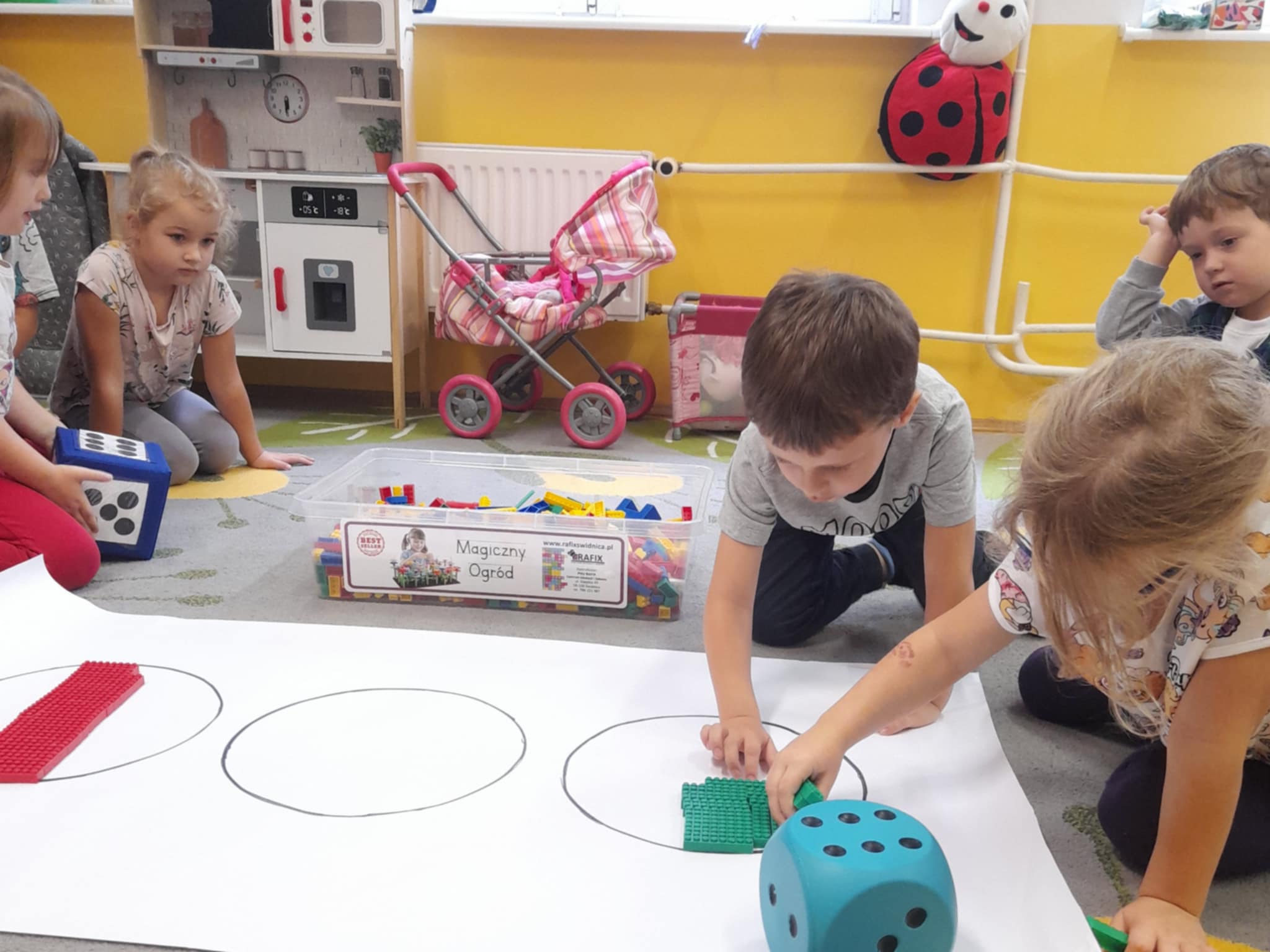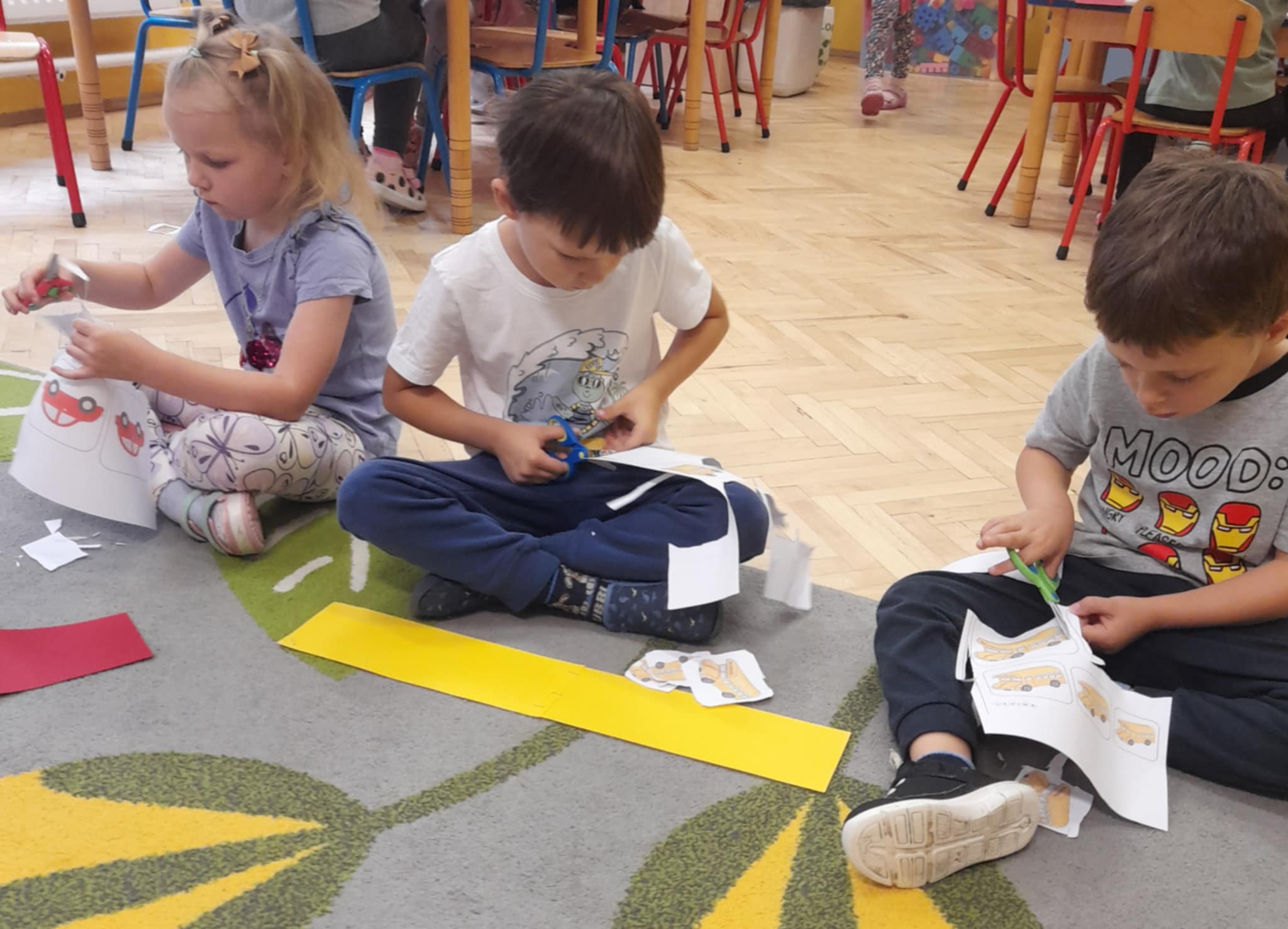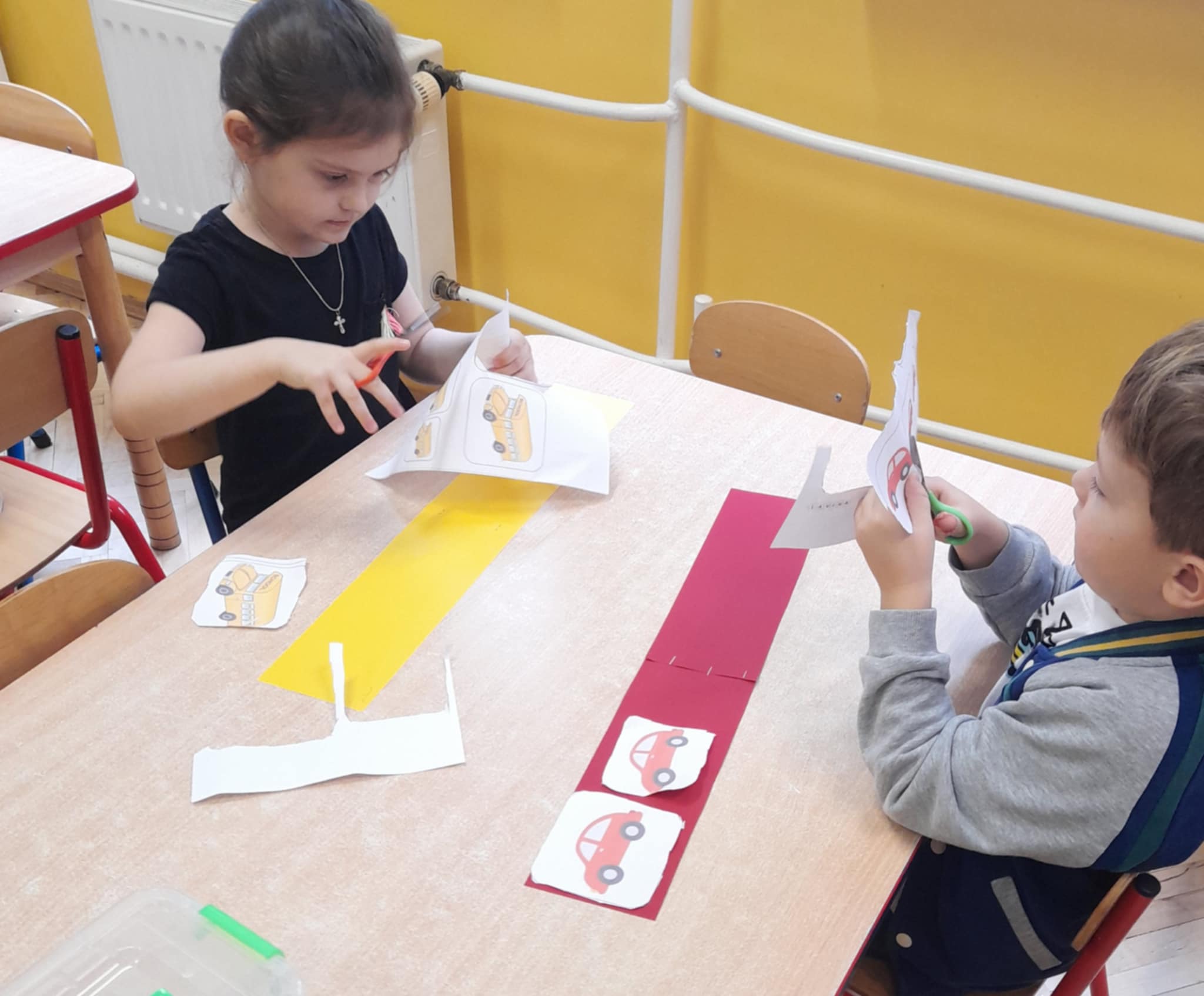 Zabawy matematyczne - liczenie, utrwalanie pojęć "największy", "najmniejszy" oraz rozwijanie logicznego myślenia Zabawy związane z tematyką: "Bezpieczeństwo w pobliżu jezdni".