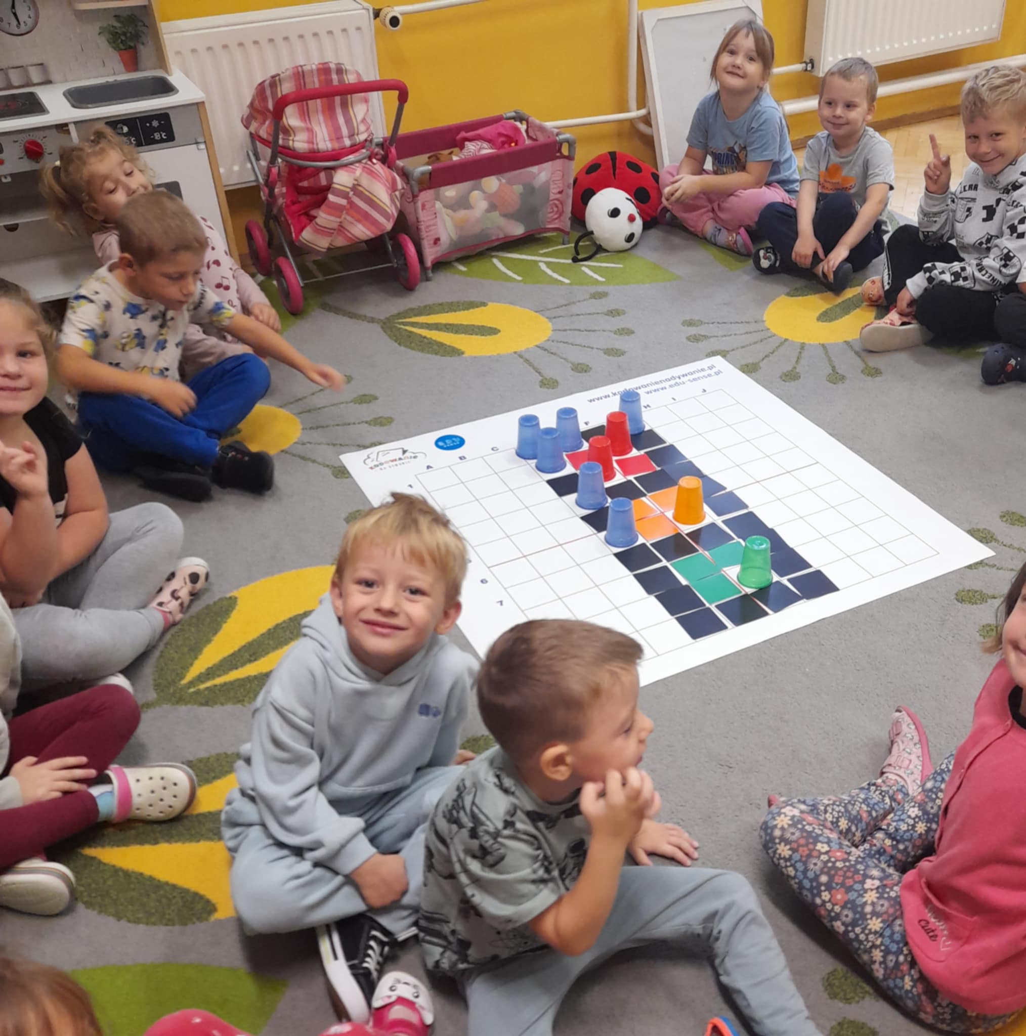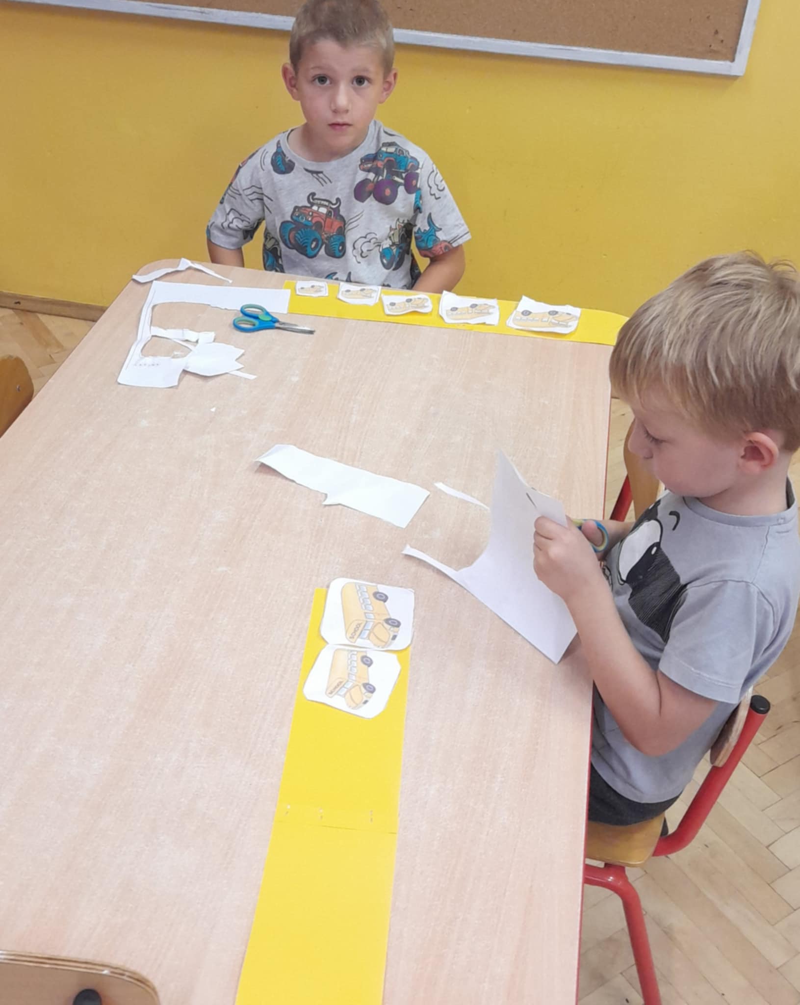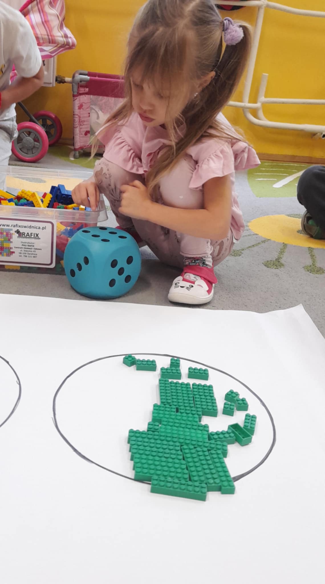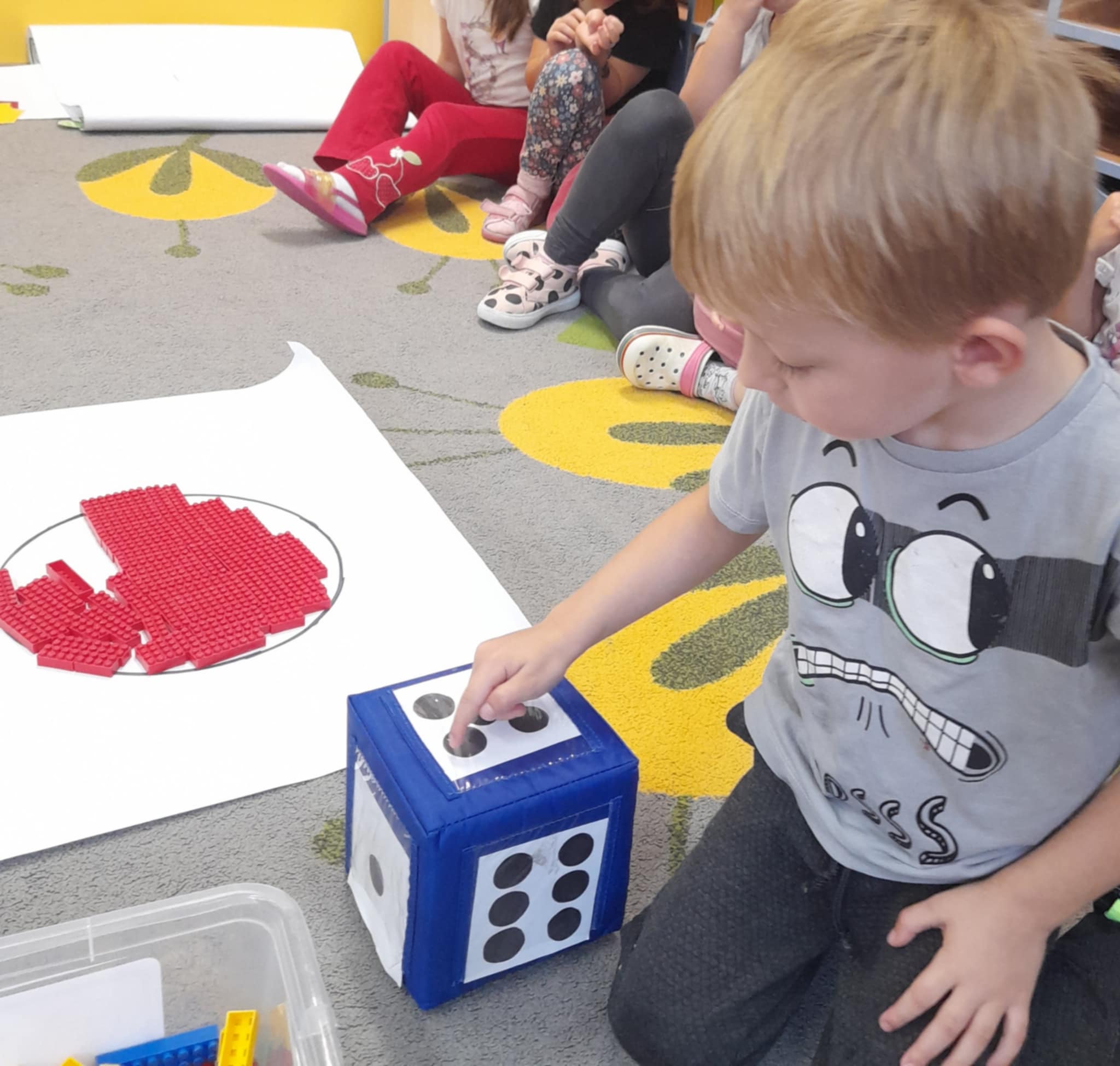 Zabawy matematyczne - liczenie, utrwalanie pojęć "największy", "najmniejszy" oraz rozwijanie logicznego myślenia Zabawy związane z tematyką: "Bezpieczeństwo w pobliżu jezdni".
