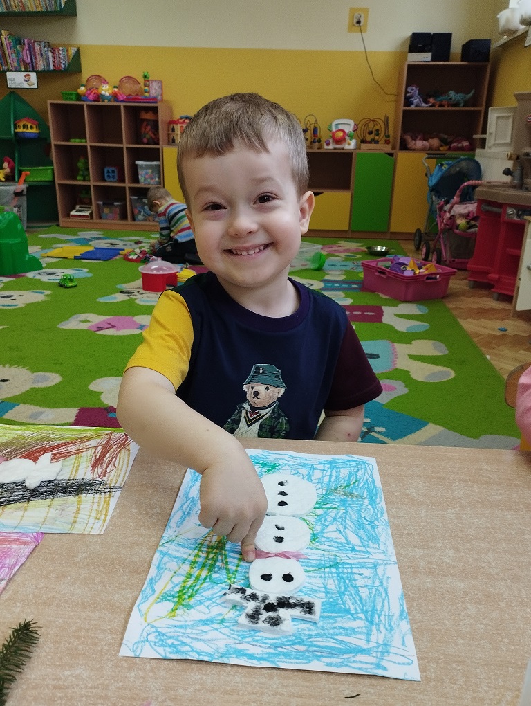 SYPIE Z NIEBA BIAŁY PUCH TY BAŁWANKA Z NIEGO ZRÓB JEDNA KULA, DRUGA KULA I JUŻ BAŁWAN Z NAMI HULA.
