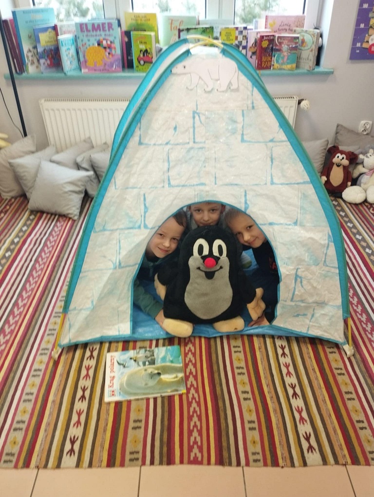 Czytanie na dywanie - wizyta Biedronek w bibliotece.
