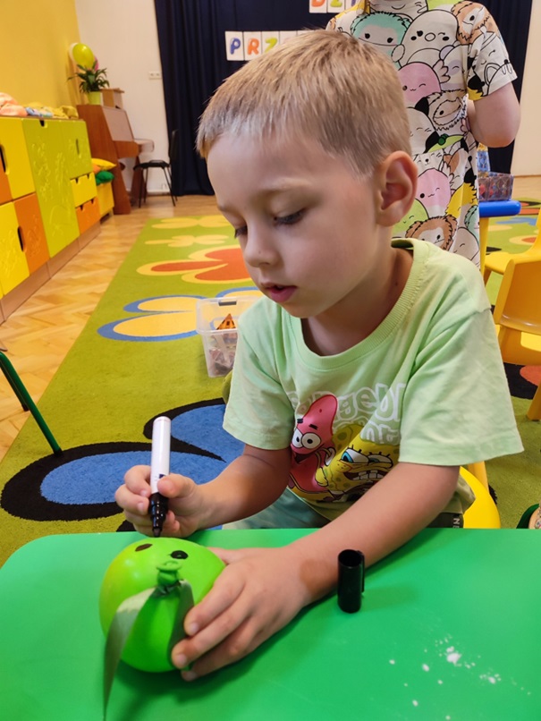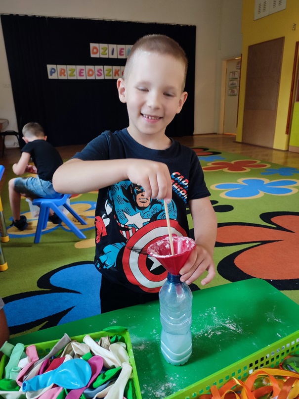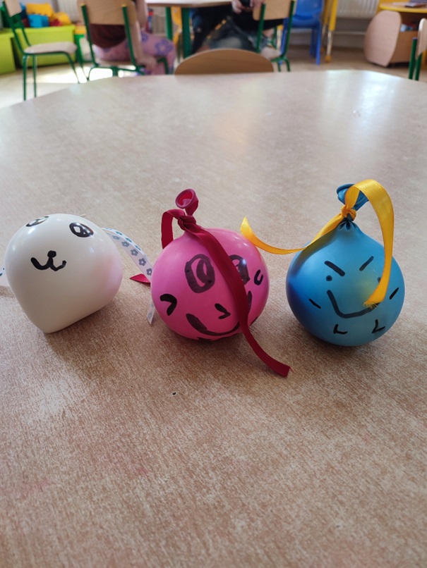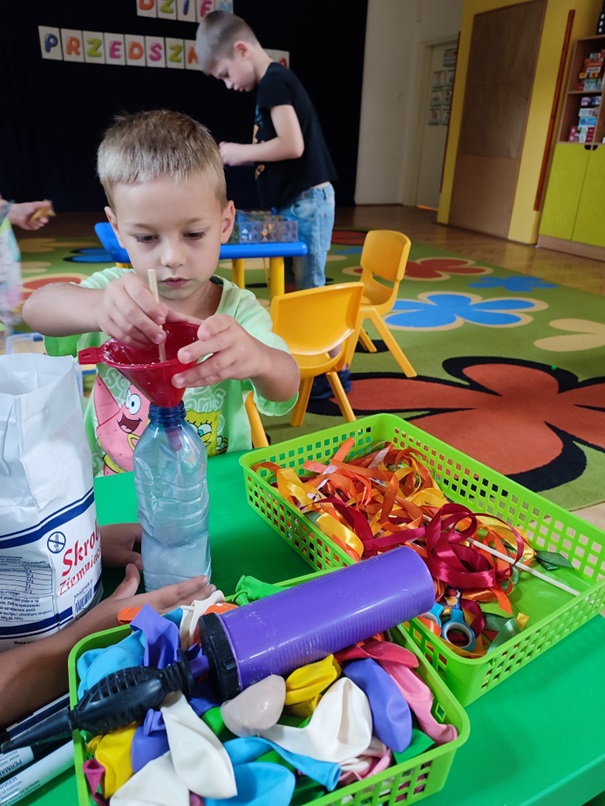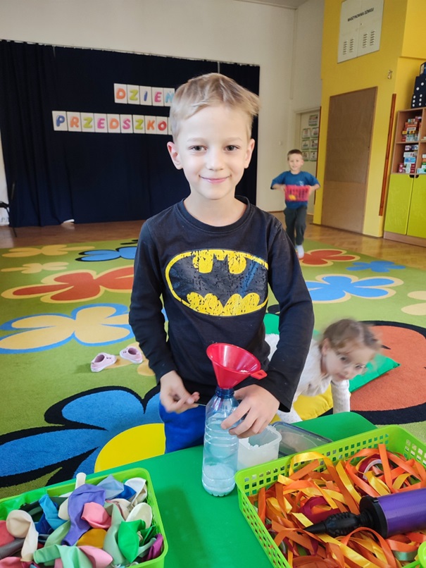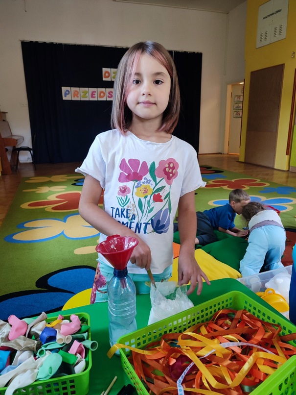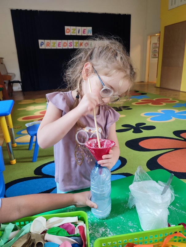 Za pomocą butelki i lejka dzieci wsypywały mąkę do balonika, który następnie był zawiązywany. Każdy gniotek był wyjątkowy, niektóre dzieci dorysowały buźki, inne nadały im imiona.