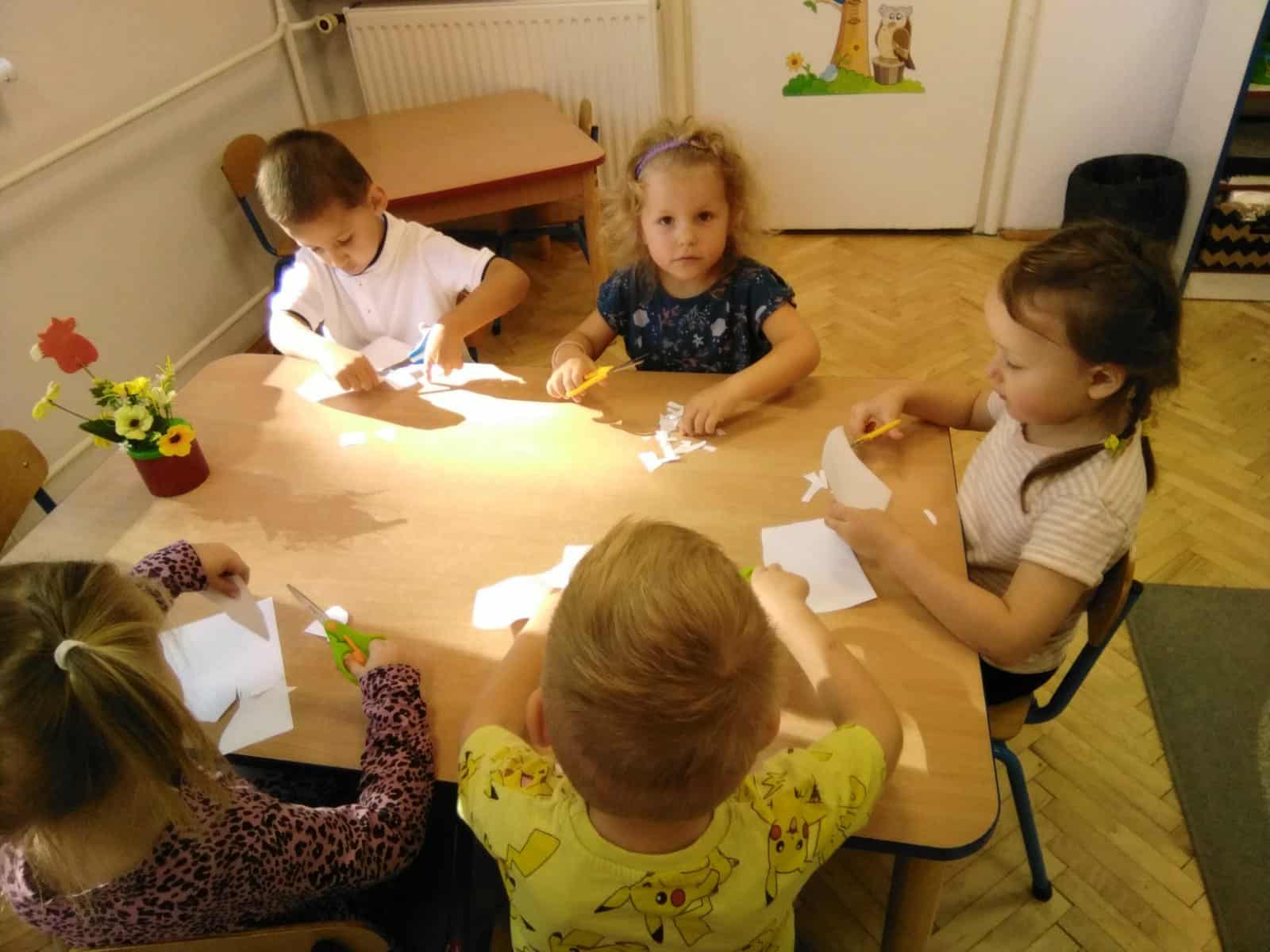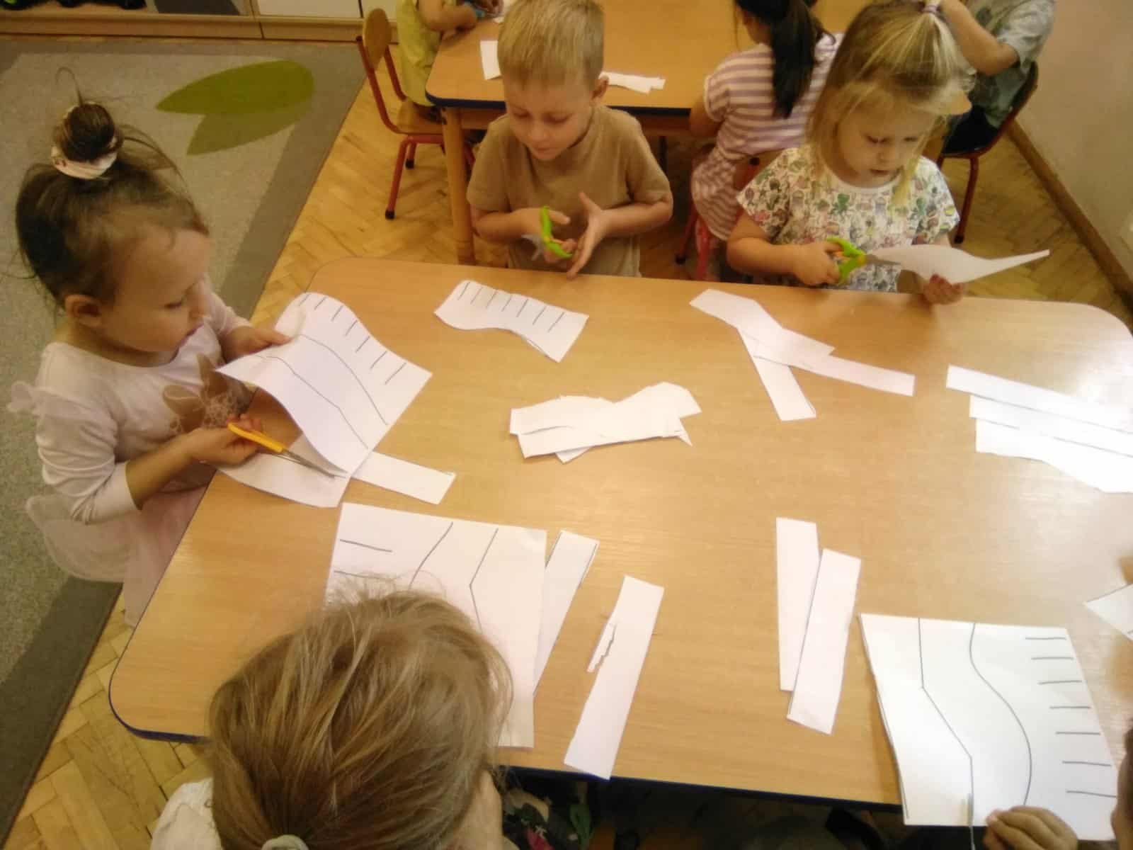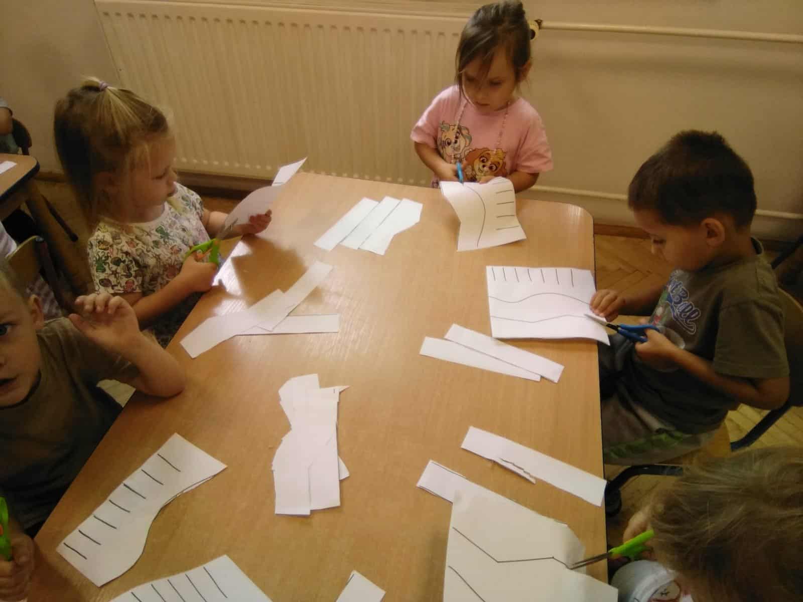 Nauka wycinania- dobrze trzymam nożyczki, ostrożnie wycinam, tworzę obrazki.