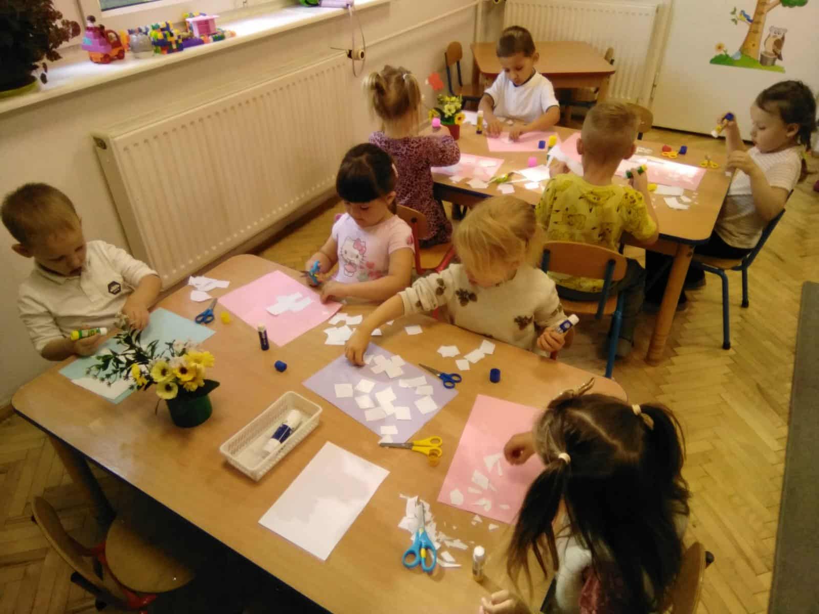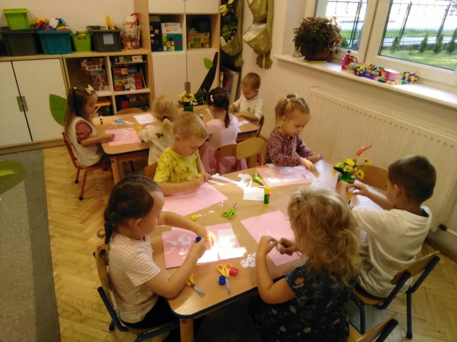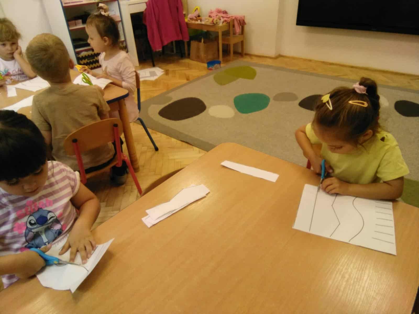 Nauka wycinania- dobrze trzymam nożyczki, ostrożnie wycinam, tworzę obrazki.