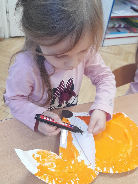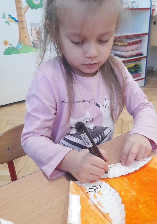 W ramach tematyki tygodnia "Zwierzęta leśne jesienią" ŻABKI poznały zwyczaje i wygląd lisa. Wykonały również prace plastyczne z wykorzystaniem talerzyków papierowych i patyczków do lodów.